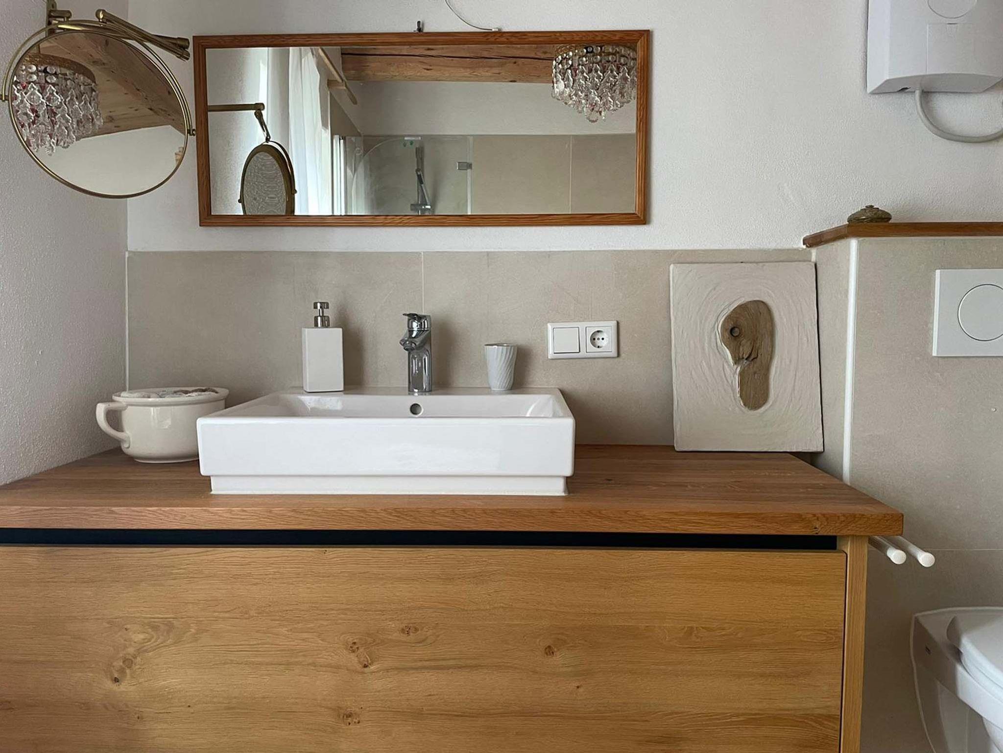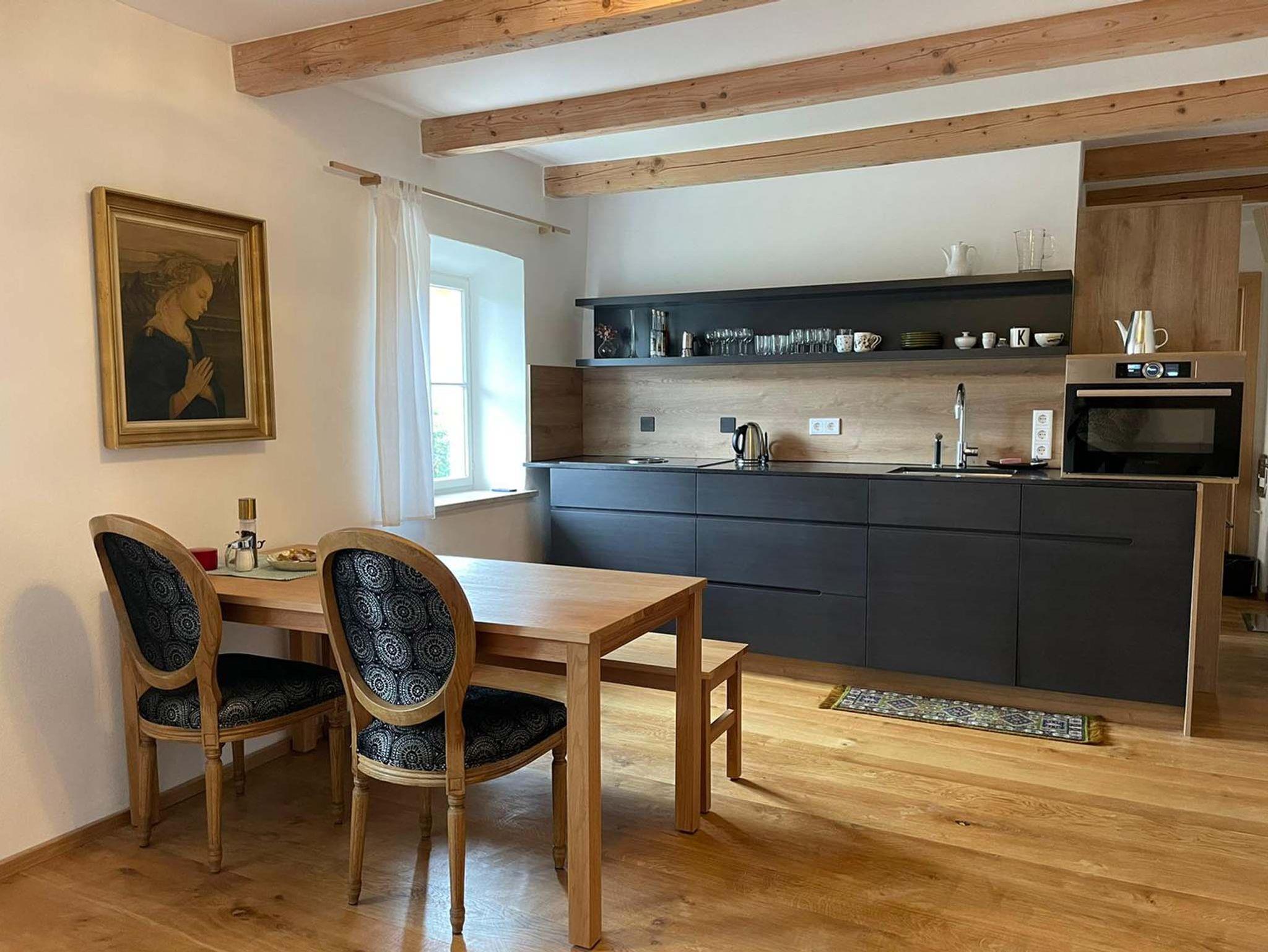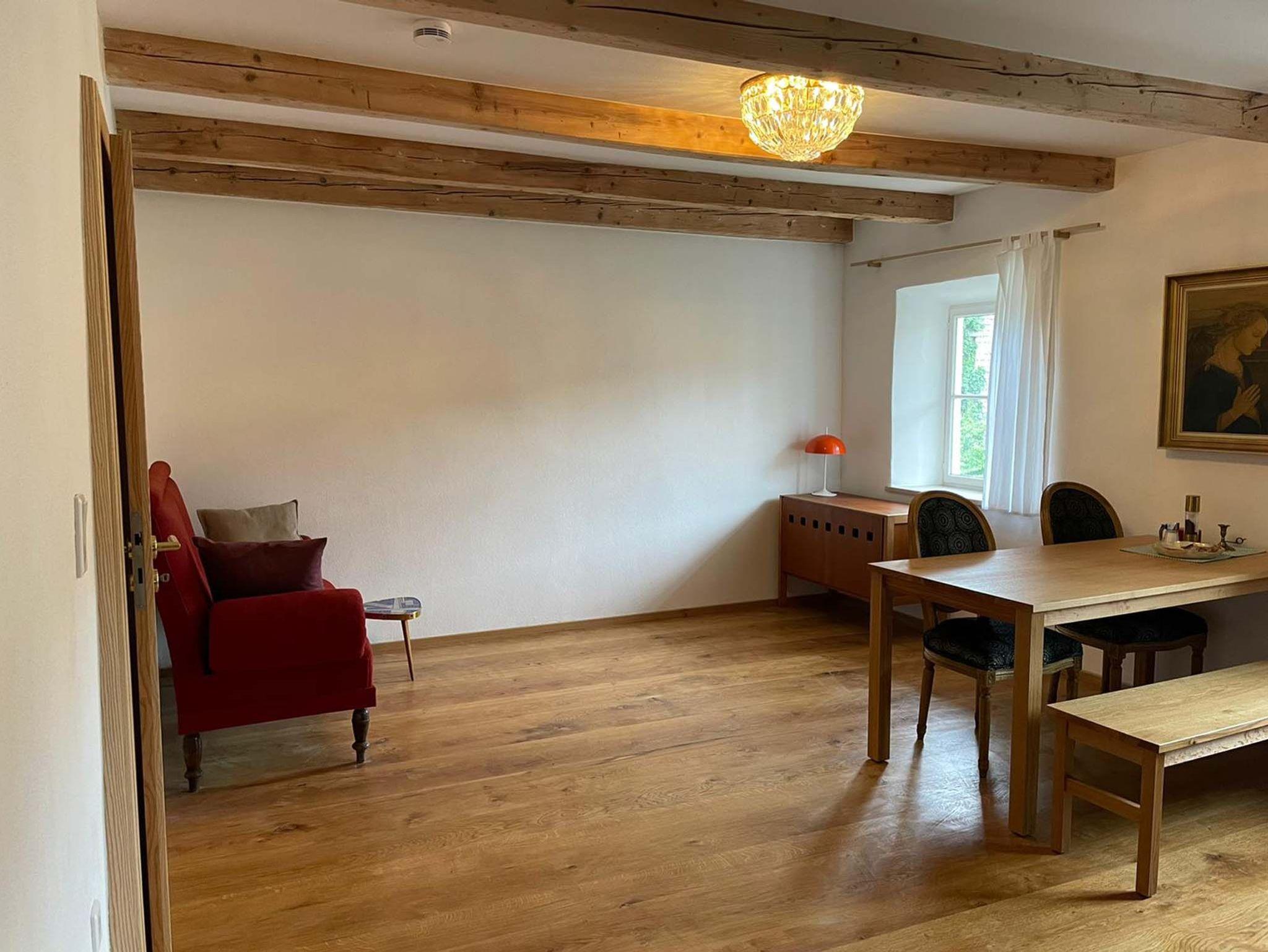 Die neu renovierte Ferienwohnung in Taching am See verfügt über drei Zimmer. Wohnküche und 2 separate Schlafzimmer. 1. Schlafzimmer mit Bett 1,60 m und 2. Schlafzimmer mit 1,40 m Bett. Echtholzbetten vom Schreiner und Massivholzboden in der gesamten Unterkunft.