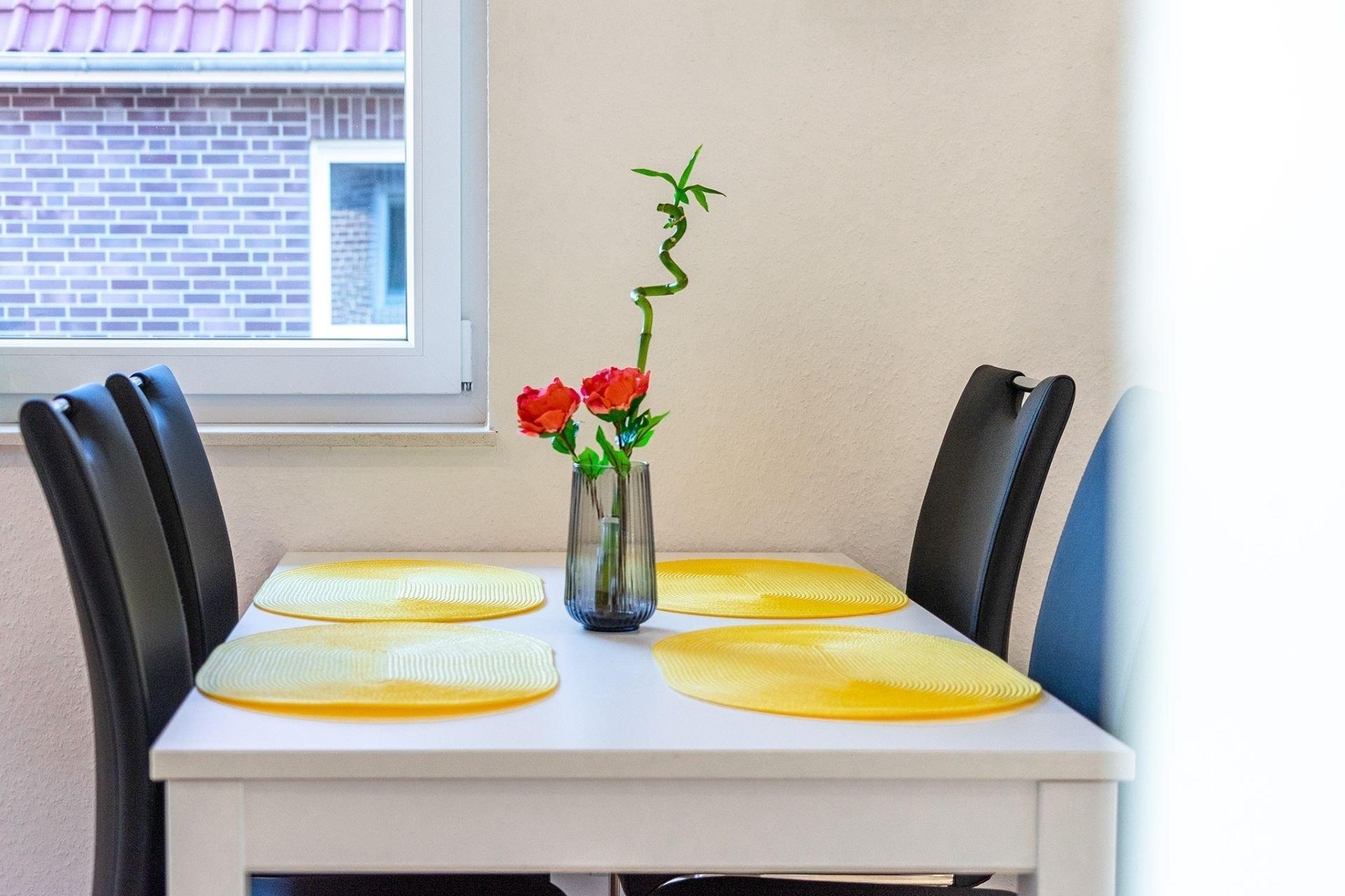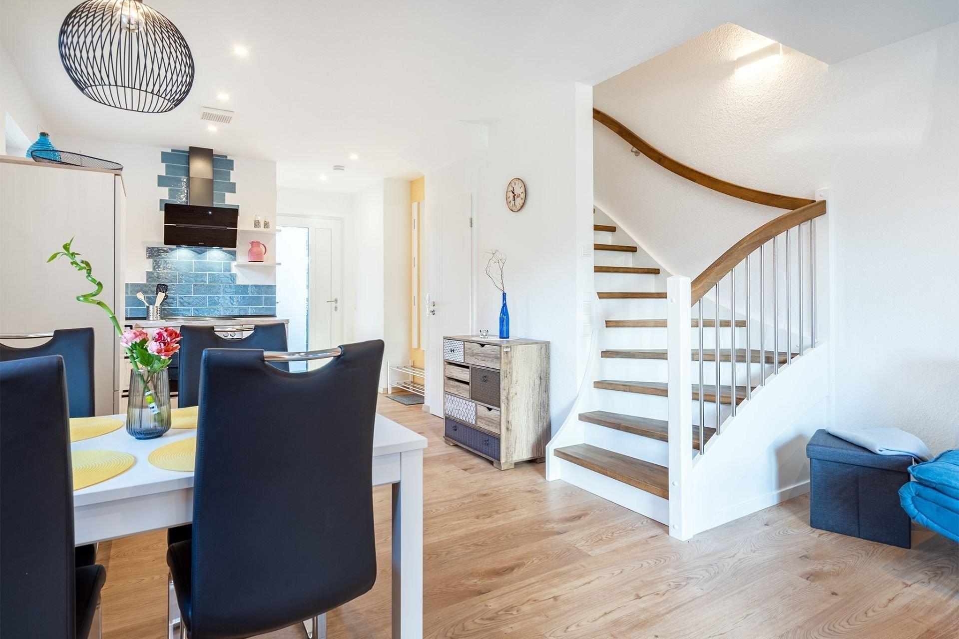 Doppelhaus direkt am Badesee Aurich-Tannenhausen.Das modern und liebevoll eingerichtete Doppelhaus Nitschke - FeWo Wurm bietet die Möglichkeit, im Herzen Ostfrieslands Ihren Urlaub zu genießen. Die Ferienwohnung in einer unserer beiden in 2022 neu gebauten Doppelhäusern liegt direkt am idyllischen Badesee in Aurich-Tannenhausen. Jede Doppelhaushälfte verfügt über ~60 m² Wohnfläche und bietet Platz für bis zu vier Personen. Das offengestaltete Erdgeschoss mit Koch-/ Wohn- und Essbereich sowie die daran anschließende Terrasse mit direktem Seeblick laden zum Wohlfühlen ein. Im Obergeschoss befinden sich zwei gemütliche Schlafzimmer und ein großes Tageslichtbad mit begehbarer Dusche, Waschbecken und WC. Parkplatz für PKW ist direkt am Haus. Größere Familien dürfen gerne beide Doppelhaushälften zusammen reservieren.