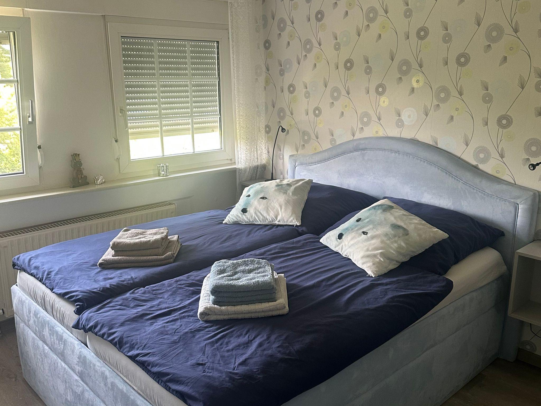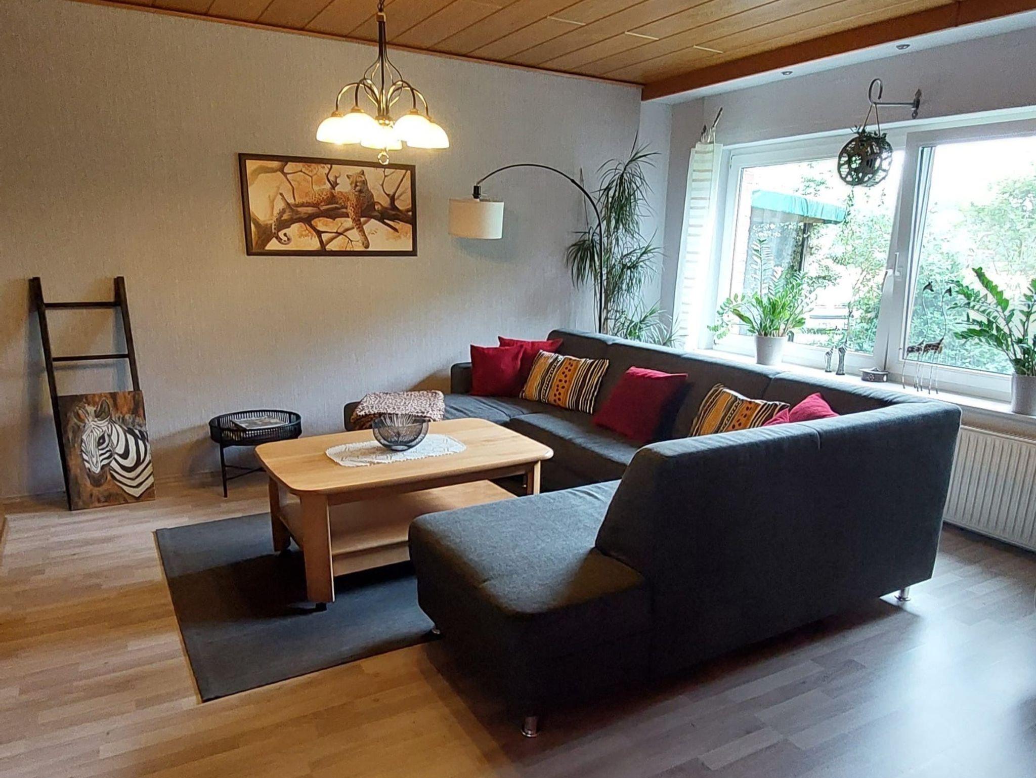Die Ferienwohnung liegt in einem freistehenden ehemaligem Bauernhaus. Die 120 qm große Wohnung wurde 1990 gebaut und 2016 umfangreich in zeitgenössischem Stil renoviert. Sie bietet genügend Platz für 6 Personen. Selbstverständlich gehört zu der Wohnung ein eigener Eingang sowie ein PKW-Stellplatz auf dem eingezäunten Gelände. Der Garten verfügt über eine überdachte Sitzecke mit Bestuhlung, sowie Sonnen-Liegen und einem Grill. Die geräumige Ferienwohnung teilt sich auf in 3 Schlafzimmern, Bad, Gäste-WC, Küche, Wohnzimmer, Büro-Ecke, Flur. In der großen, exklusiv eingerichteten Küche können Sie nach Herzenzlust kochen und essen. SIe haben Zugang zu schnellem WLAN (50 Mbit per Glasfaser). Weitere Details können Sie am besten den Bildern entnehmen. Bilder sagen mehr als tausend Worte. Auf dem weitläufigen Gelände befindet sich unsere Hundepension. Auf Anfrage können wir uns auch um Ihre Fellnase kümmern.