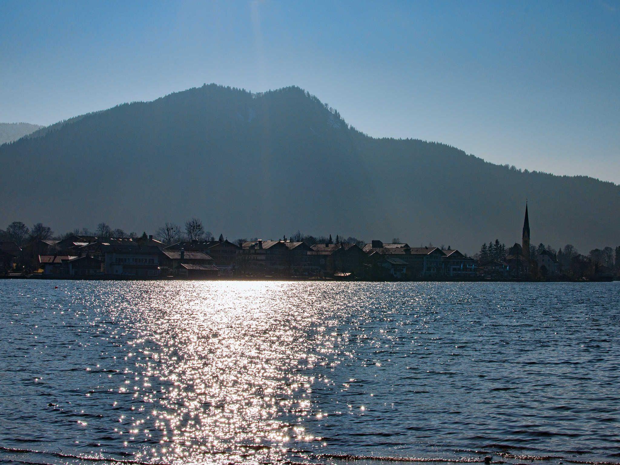 Von der Ferienwohnungen aus erreichen Sie in wenigen Geh-Minuten das Ufer des Tegernsees: Genießen Sie dort die wunderbare Aussicht auf den bekannten Malerwinkel in Rottach-Egern und die umliegende Bergwelt.