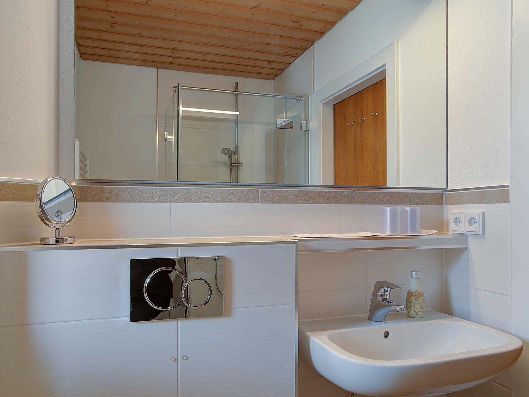 Die Ferienwohnung wurde umfassend erneuert: Holzfußböden, Zirbenholz-Schlafzimmer für guten Schlafkomfort sowie ein komplett neuer Sanitärbereich mit Dusche, Waschbecken, Spiegel über Wandbreite, WC und Fenster . Erneuerung Wohnzimmer Mobiliar und Interieur aller Zimmer Toshiba LED Flachbildschirm TV .