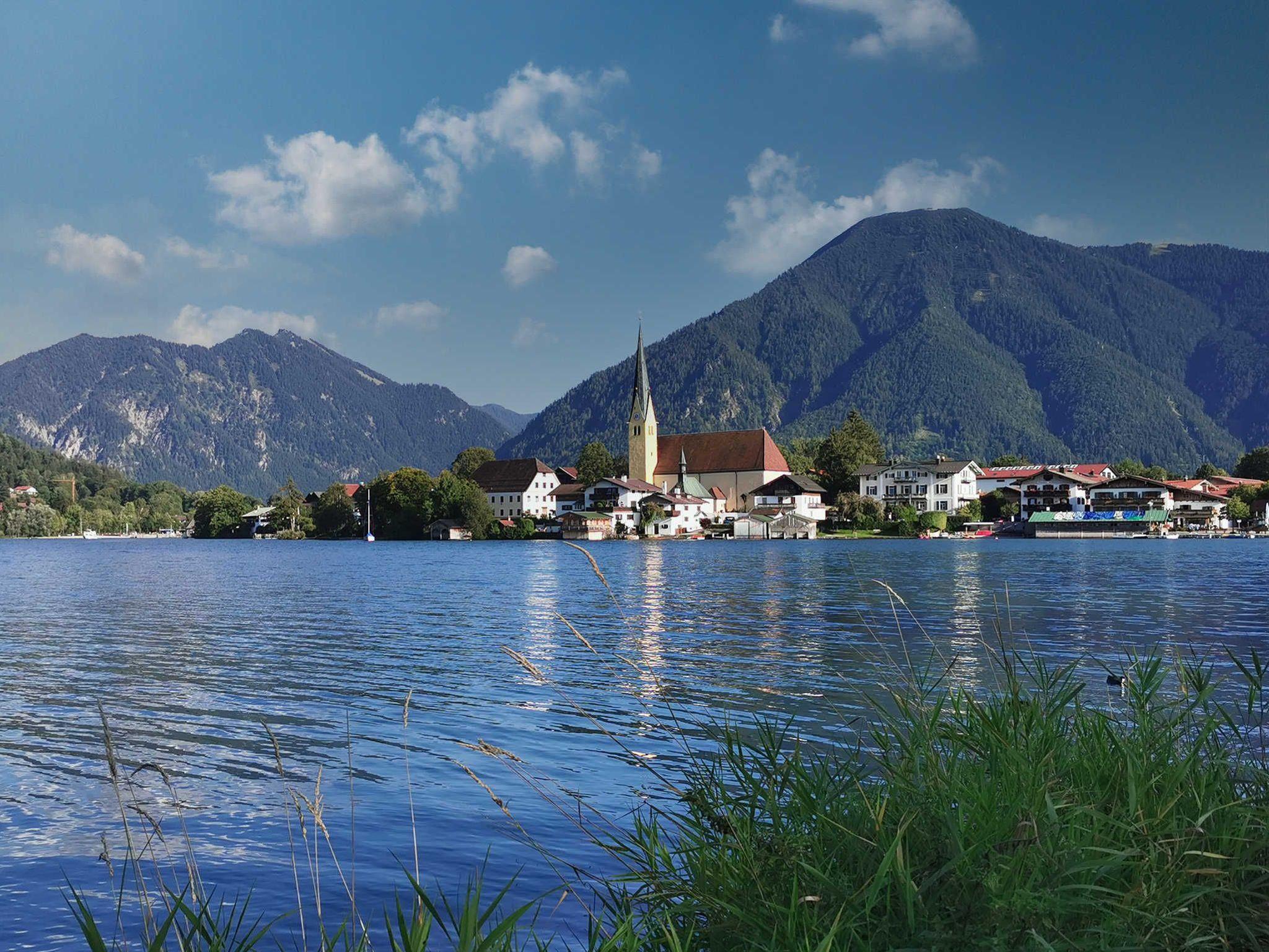Von der Ferienwohnungen aus erreichen Sie in wenigen Geh-Minuten das Ufer des Tegernsees: Genießen Sie dort die wunderbare Aussicht auf den bekannten Malerwinkel in Rottach-Egern und die umliegende Bergwelt.