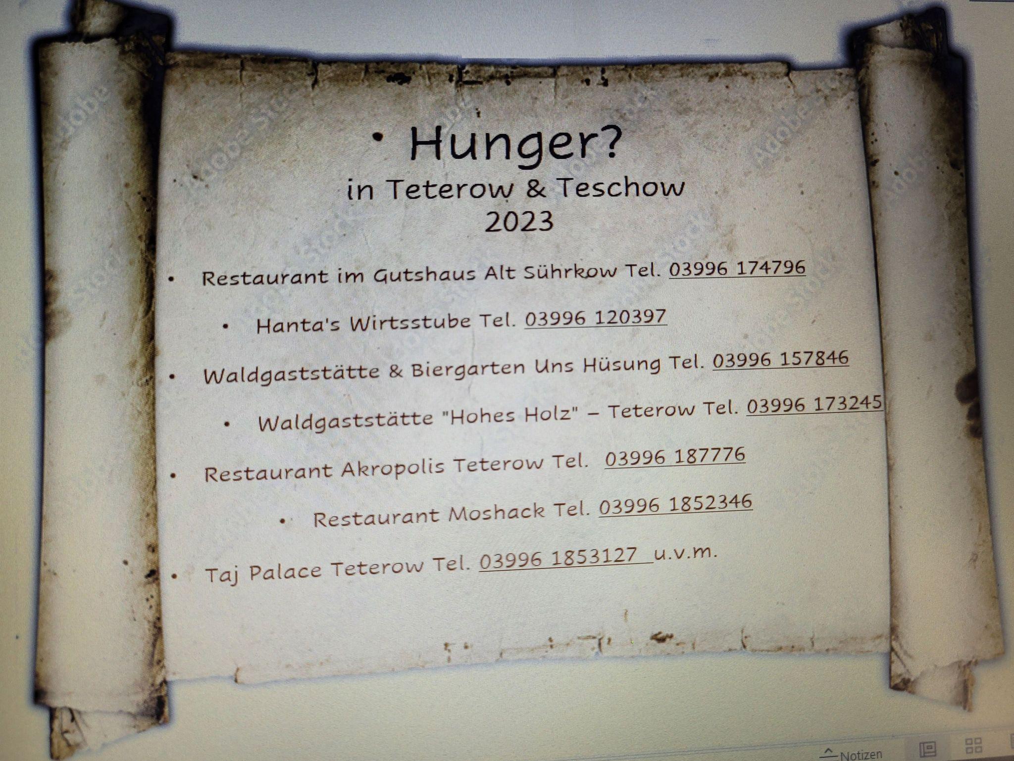 Teschow ist ein Ortsteil von Teterow und liegt knapp 5 km vom Zentrum der Stadt entfernt . Der idyllische Ort in der Mecklenburgischen Schweiz, inmitten von Wiesen und Feldern, lädt zum Wandern, Radfahren und zu kulturellen Ausflügen in die Umgebung ein. Der Teterower See mit einer kleinen Naturbadestelle ist nur einen Katzensprung entfernt und ist ein kleines Paradies für Angler. Ein Reiterhof ist in direkter Nähe!
