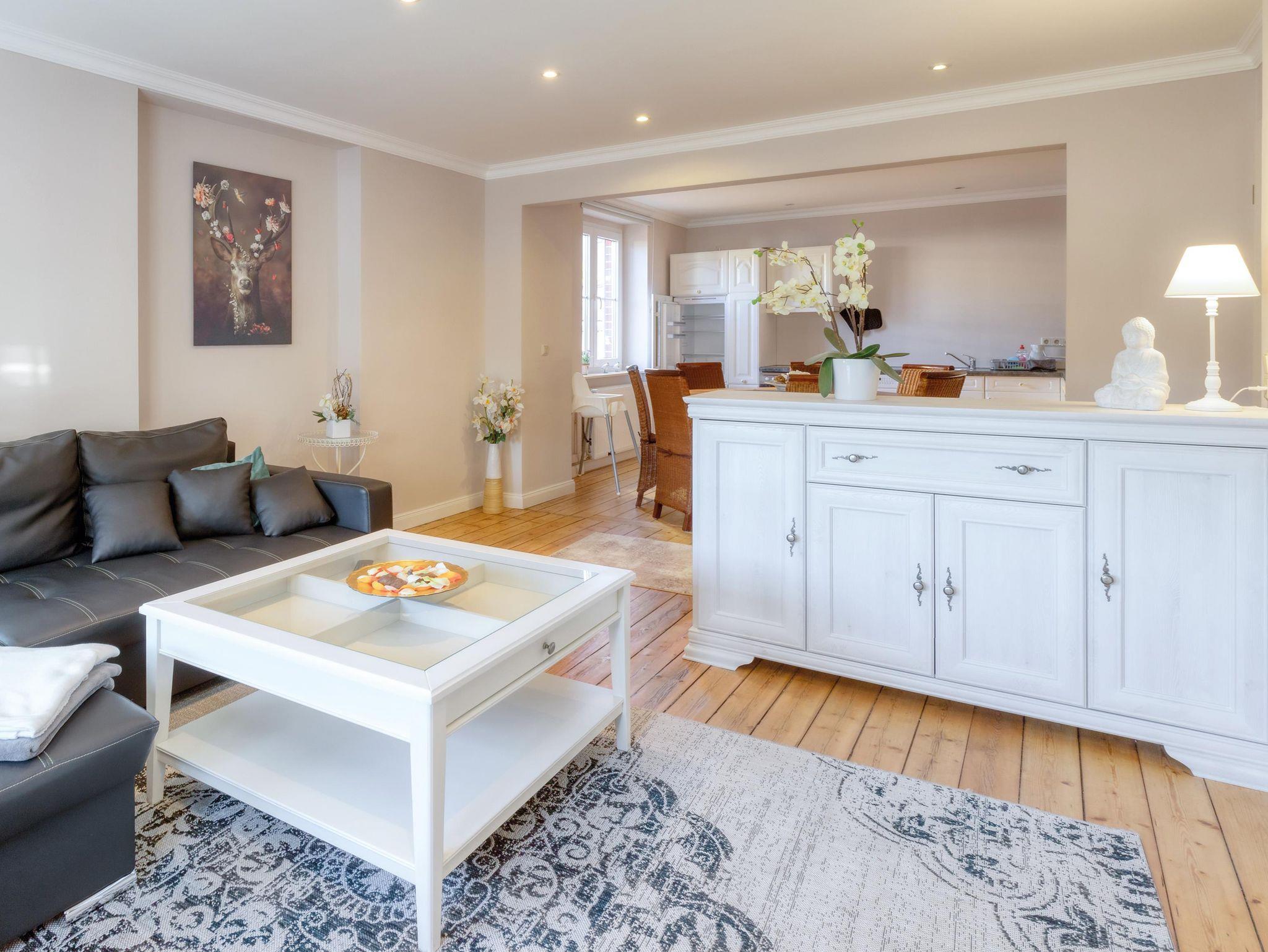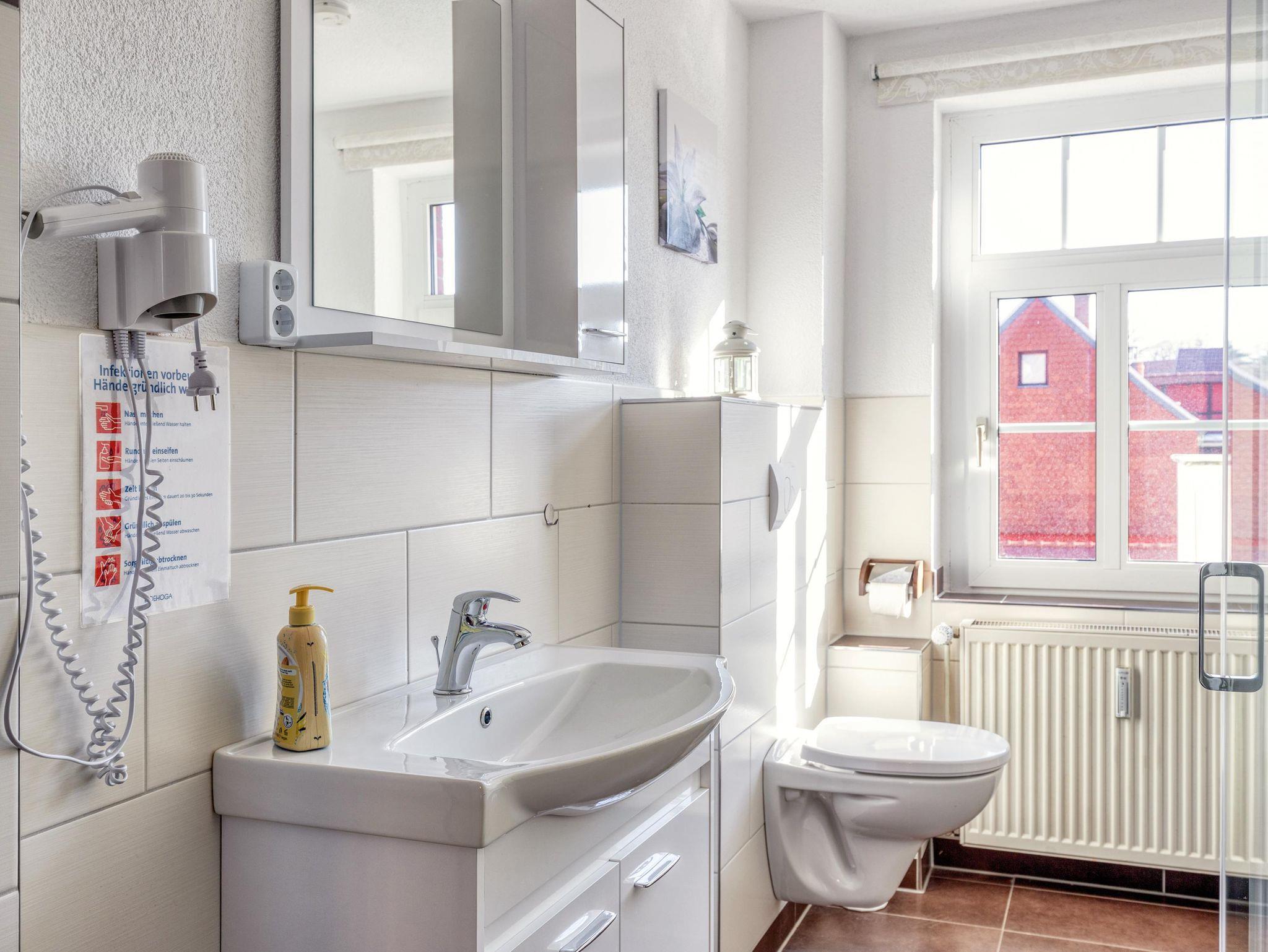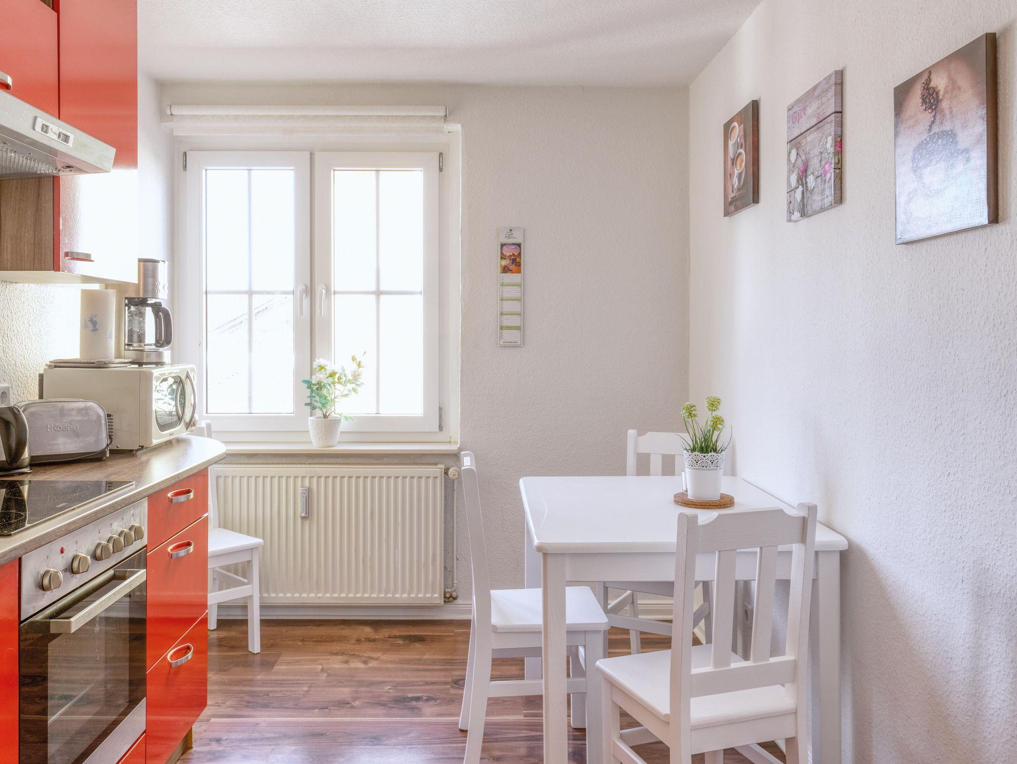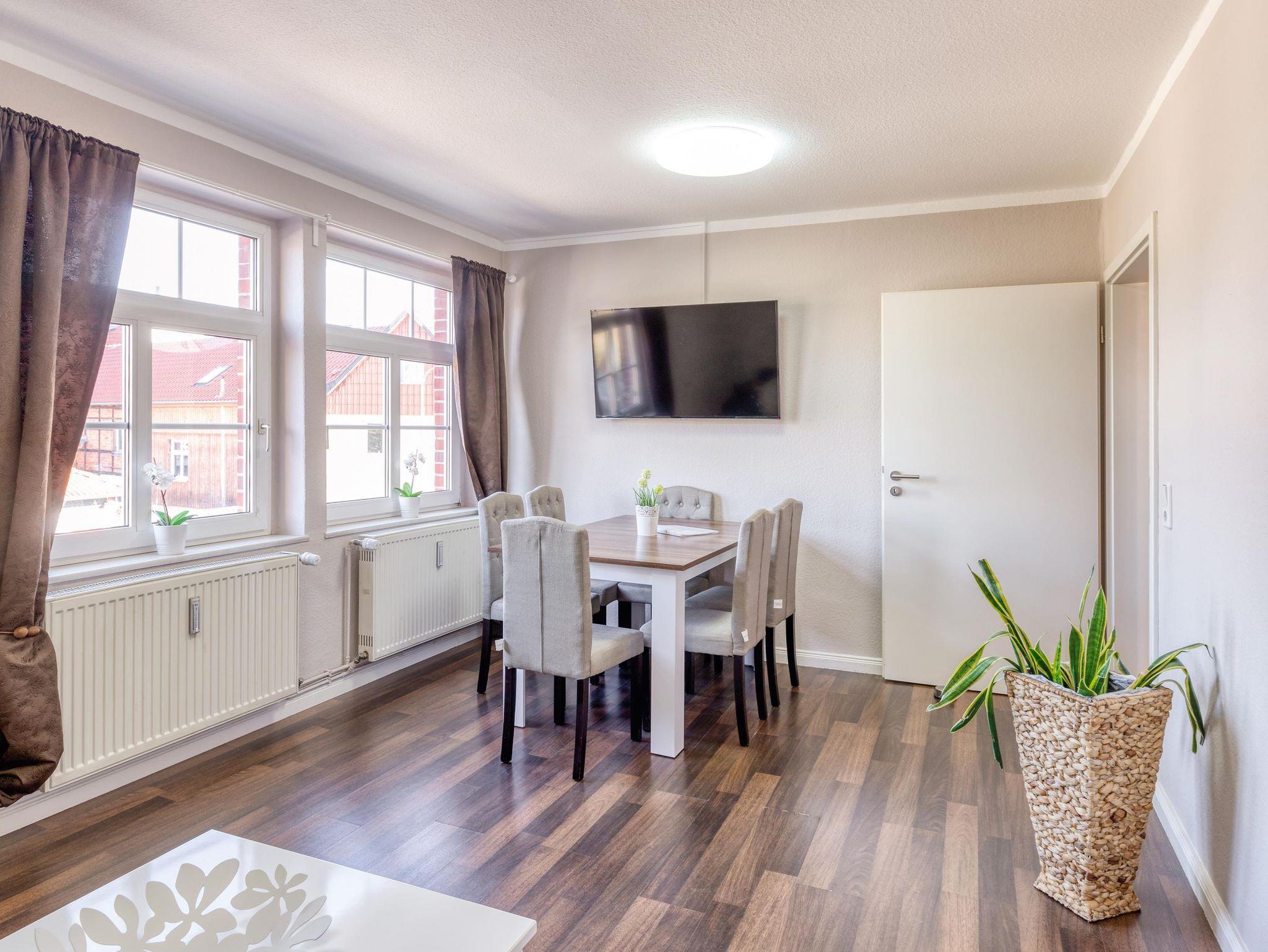 4 komfortabel eingerichtete Ferienwohnungen (zwei Wohnungen in der 1. Etage und eine Wohnung im Dachgeschoss). Mobiliar zum Wohlfühlen und kostenfreies WLAN! Die Wohnungen verfügen über Wohnzimmer mit gemütlicher Sitzecke (Aufbettung möglich) und SAT-TV. Schlafzimmer. Küche mit Geschirrspüler, Backofen, Mikrowelle, E-Herd mit Dunstabzugshaube, große Kühlgefrierkombination, Küchengeräte - Kaffeemaschine, Wasserkocher, Toaster. Anspruchsvolles Bad mit einer Dusche mit ebenerdigem Einstieg. Ansprechende Flurgestaltung. Hofbereich mit Freisitz und Gartenmöbel. Grill. Kostenfreie PKW-Stellplätze. Bei Bedarf Wäscheservice.