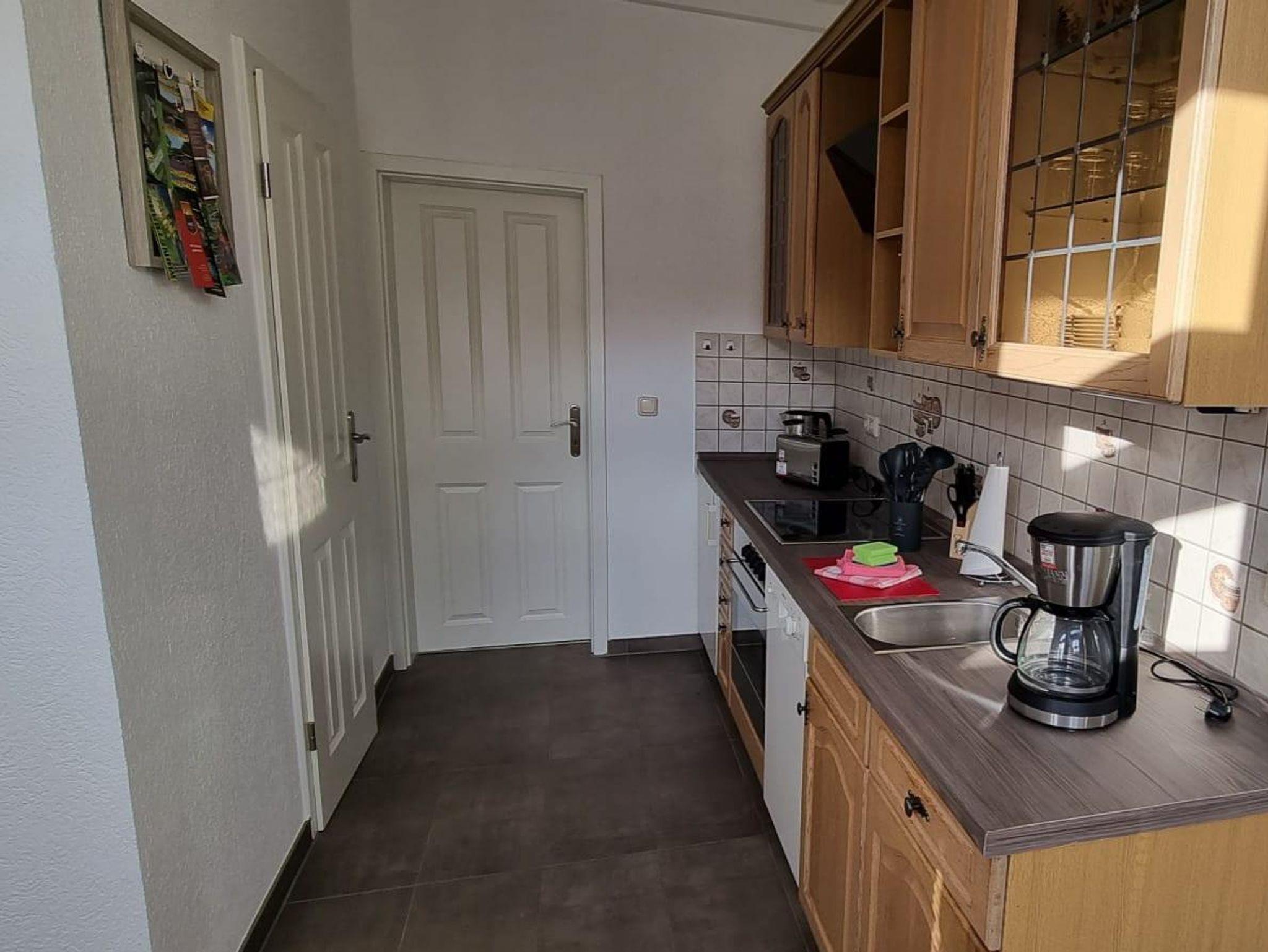 Herzlich Willkommen in unserer modern eingerichteten Ferienwohnung Stecklenburg. Die Wohnung verfügt über einen separaten Eingang und liegt im Erdgeschoss des Hauses. Sie bietet Ihnen Wohnzimmer mit Sitzbereich, SAT-TV und Essbereich, ein seperates Schlafzimmer sowie ein Bad mit Dusche und WC zur Alleinnutzung. Aus dem Wohnzimmerfenster genießen Sie den Blick auf die nahegelegene Stecklenburg, welche unserer Ferienwohnung ihren Namen gab. Das Schlafzimmer ist mit einem Kingsize- Bett (1,80 m) ausgestattet. Eine Aufbettung im Wohnzimmer ist durch das Schlafsofa ( Liegefläche 1,40 m) möglich. Die Küche ist mit Backofen, Geschirrspüler, Kühlschrank, Küchengeräte - Kaffeemaschine, Toaster und Wasserkocher ausgestattet.