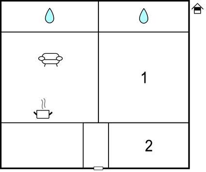 Wohnraum/Küche - 2 Schlafmöglichkeiten. (Doppelbett(en)).