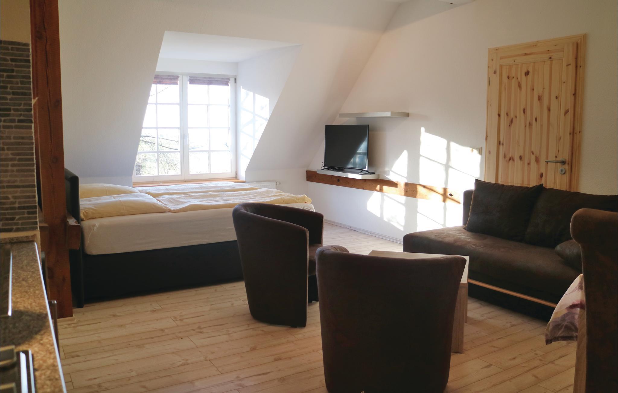 Die Ferienwohnung in Sagerheide liegt ruhig mitten in der Natur und direkt am Wald. Sie ist von Feldern und Wäldern umgeben und nur 1500 m vom Badestrand des Groß Lüsewitzer Sees und ca. 25 km von der Ostseeküste entfernt. Die Wohnung befindet sich auf einem allein liegenden 7000 m² großen Grundstück, auf dem sich ein Café (Gaststätte) befindet, welches aus einem ehemaligen Kuhstall entstand. Hier können auch Sie gerne Frühstücken und Mittags oder am Abend im gepflegten Biergarten, im Schatten der hohen alten Bäume, in Ruhe essen und ein kühles Glas Bier oder einen Wein genießen. Für Ihre Kinder gibt es einen Spielplatz mit Sandkasten, Wippe und Schaukel. Gern dürfen Sie selbst grillen und den Abend am Lagerfeuer ausklingen lassen. Die Umgebung, mit der unglaublich schönen Landschaft und den vielen Tieren, wird Ihnen gefallen. Fahren Sie mit dem Fahrrad in die Weite der Natur - zum Beispiel nach Graal Müritz an die Ostsee, fast nur über Naturwege. Oder erkunden Sie die Recknitz bzw. die Warnow mit einem Kanu oder Ruderboot. Einkaufen können Sie im 3 km entfernten Sanitz. Dort finden Sie u.a. Apotheken, Ärzte und Geldautomaten. Die Ferienwohnung ist idyllisch und gleichzeitig zentral gelegen, so dass Sie von hier aus viele Ziele in einer überschaubaren Zeit erreichen können. In der nur 8 km entfernten Hansestadt Rostock können Sie einkaufen oder bummeln gehen. Genießen Sie die zahlreichen kulturellen Angebote der Stadt und der Umgebung. Tolle Tagesausflüge bieten sich nach Warnemünde, Kühlungsborn, Stralsund oder auf die Insel Rügen an. Selbst wenn Sie mit der Bahn anreisen, der Bahnhof ist 1500 m entfernt, können Sie stündlich mit dem Zug von Groß Lüsewitz aus Richtung Rostock und Wismar fahren. Waschmaschine/Trockner gegen Gebühr.