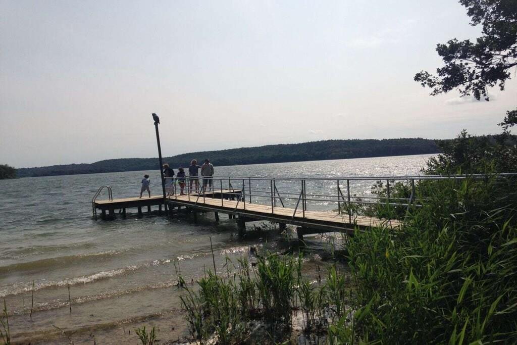 Das Ferienhaus MaRi befindet sich auf einem ca. 2000 qm großen Seegrundstück, dass direkt am Dieksee liegt. Vom eigenen Bootssteg aus kann man über die Badeleiter bequem ins Wasser gleiten, um eine Runde zu schwimmen oder man kann ins Kanu steigen, um die Umgebung vom Wasser aus zu erkunden. Das Ferienhaus MaRi ist zweigeschossig. Das Grundstück des Ferienhauses MaRi liegt an einem ruhigen Sandweg, dem Lindenweg und grenzt unmittelbar an den Dieksee.