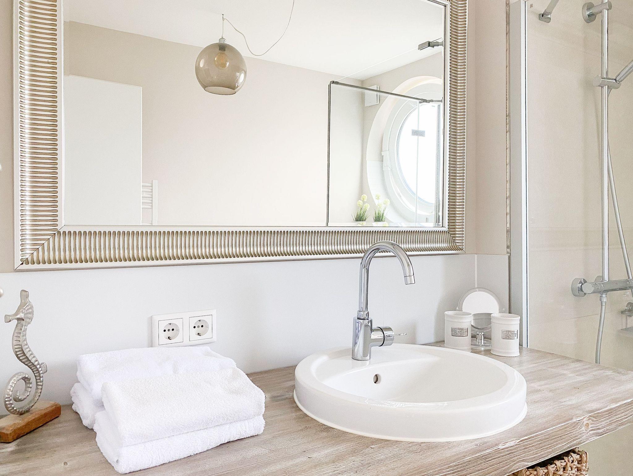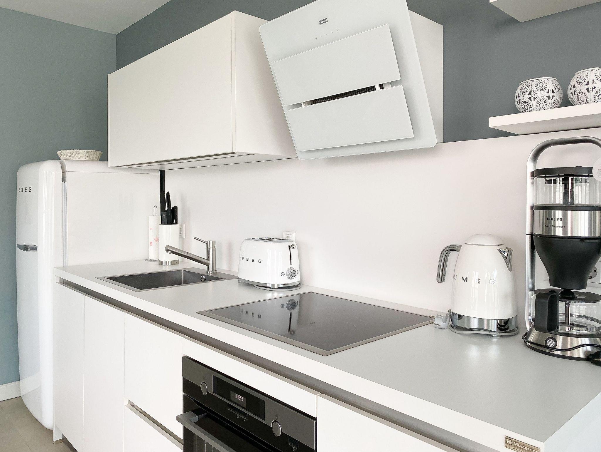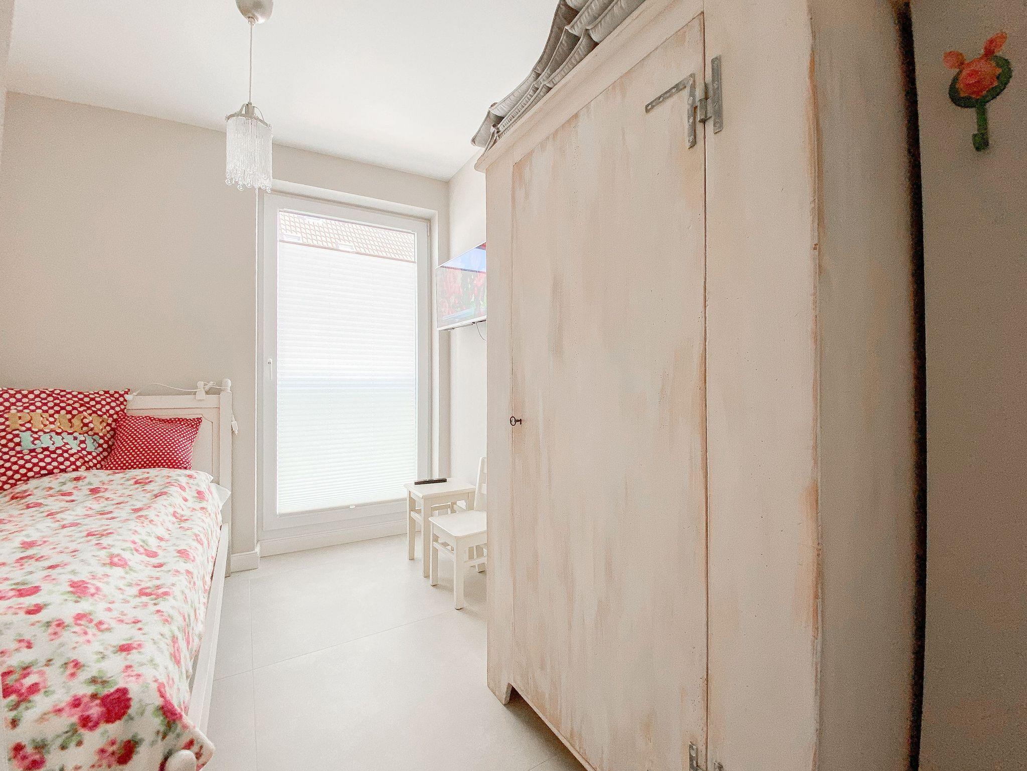 Ankommen und wohl fühlen in dieser hochwertig ausgestatteten und stilvoll eingerichteten Wohnung mit bodentiefen Fensterflächen, die für helle und sonnige Räumlichkeiten sorgen. Der Wohnbereich ist mit einem gemütlichen Sofa, TV und WLAN ausgestattet und der Essbereich bietet reichlich Platz für 4 Personen. Auf dem vorgelagerten Balkon in Westausrichtung, möbliert mit hochwertigen Gartenmöbeln, läßt sich die Sonne bis in die Abendstunden genießen. Die offene, moderne Einbauküche ist bestens ausgestattet. Es gibt 2 Schlafzimmer (1 Doppelbett und 1 Einzelbett), die beide über einen zusätzlichen TV und ausreichend Stauraum für Ihre Urlaubsgarderobe verfügen. Alle Fenster sind mit elektrischen Außenjalousien versehen. Das moderne Bad verfügt neben Dusche und Waschtisch mit viel Ablagefläche auch über eine integrierte Waschmaschine.