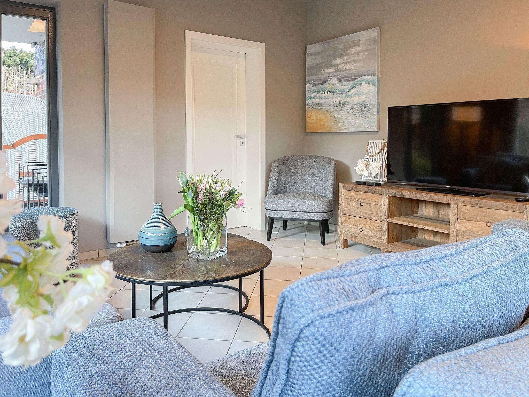 Exklusive Ferienwohnung Deck 1 in Timmendorfer Strand, 250 m zum Strand, mit Terrasse, Garten und moderner Ausstattung.