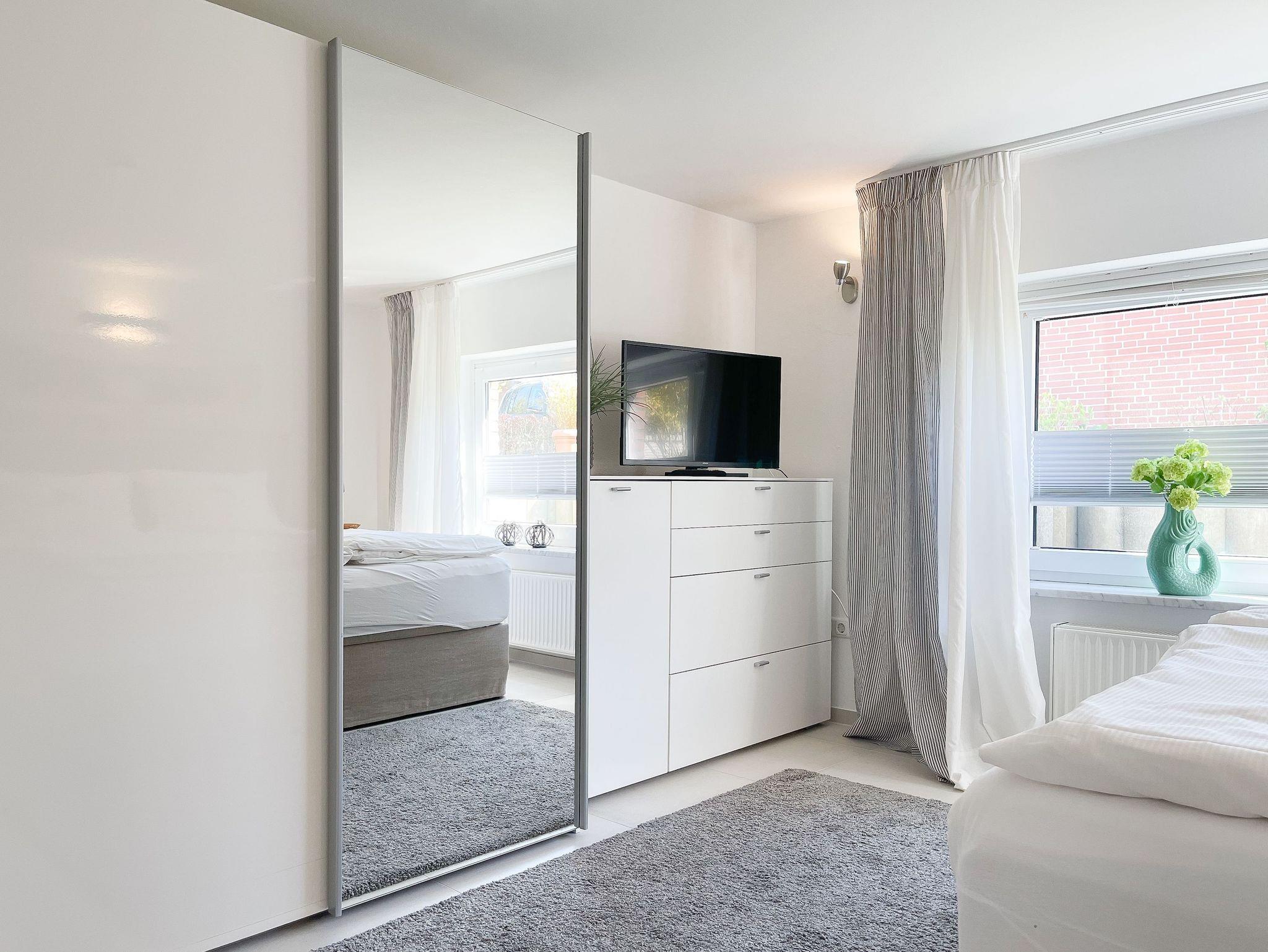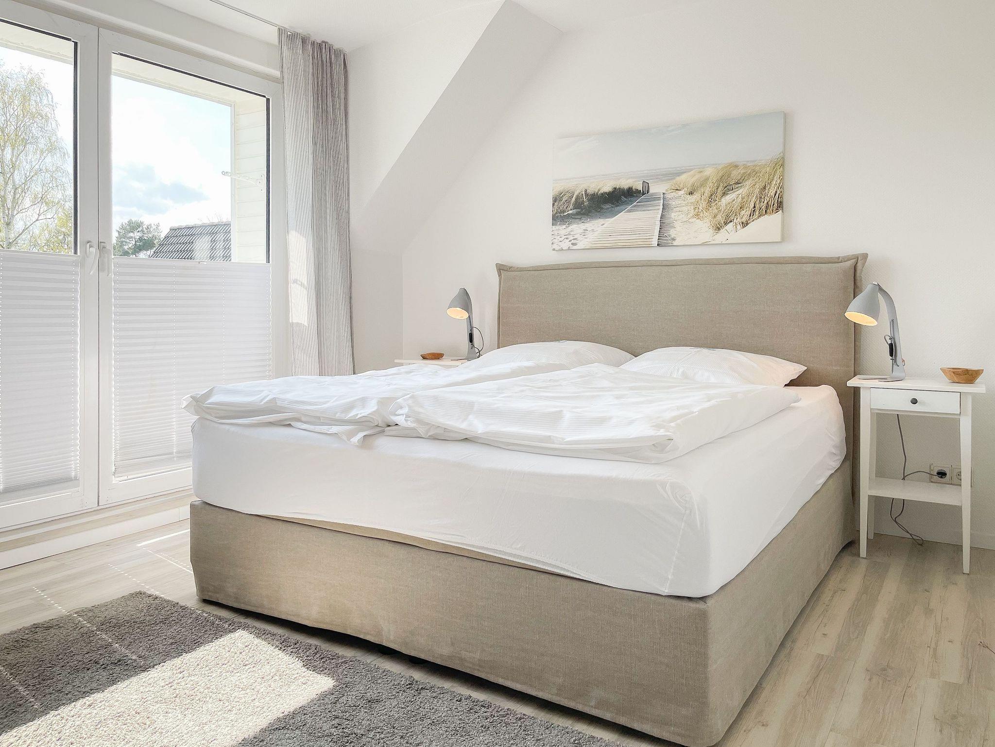 Zwei Schlafzimmer mit Doppelbetten[nbsp][nbsp]und ein Bad befinden sich im Obergeschoss, zwei weitere Schlafzimmer mit Doppelbetten[nbsp] sowie zwei Bäder, Hometrainer und Sauna im Untergeschoss. Alle Schlafzimmer sind mit TV ausgestattet und die Fenster sind mit Verdunklungsplissees versehen, ein Schlafzimmer ist zusätzlich mit einem Kinderbett (120x60cm) ausgestattet. Eine Waschmaschine und ein Trockner sind ebenfalls auf dieser Ebene untergebracht. Internetzugang über WLAN steht zur kostenlosen Nutzung zur Verfügung. PKW Stellplätze befinden sich am Haus und Fahrräder können trocken in der Garage untergestellt werden
