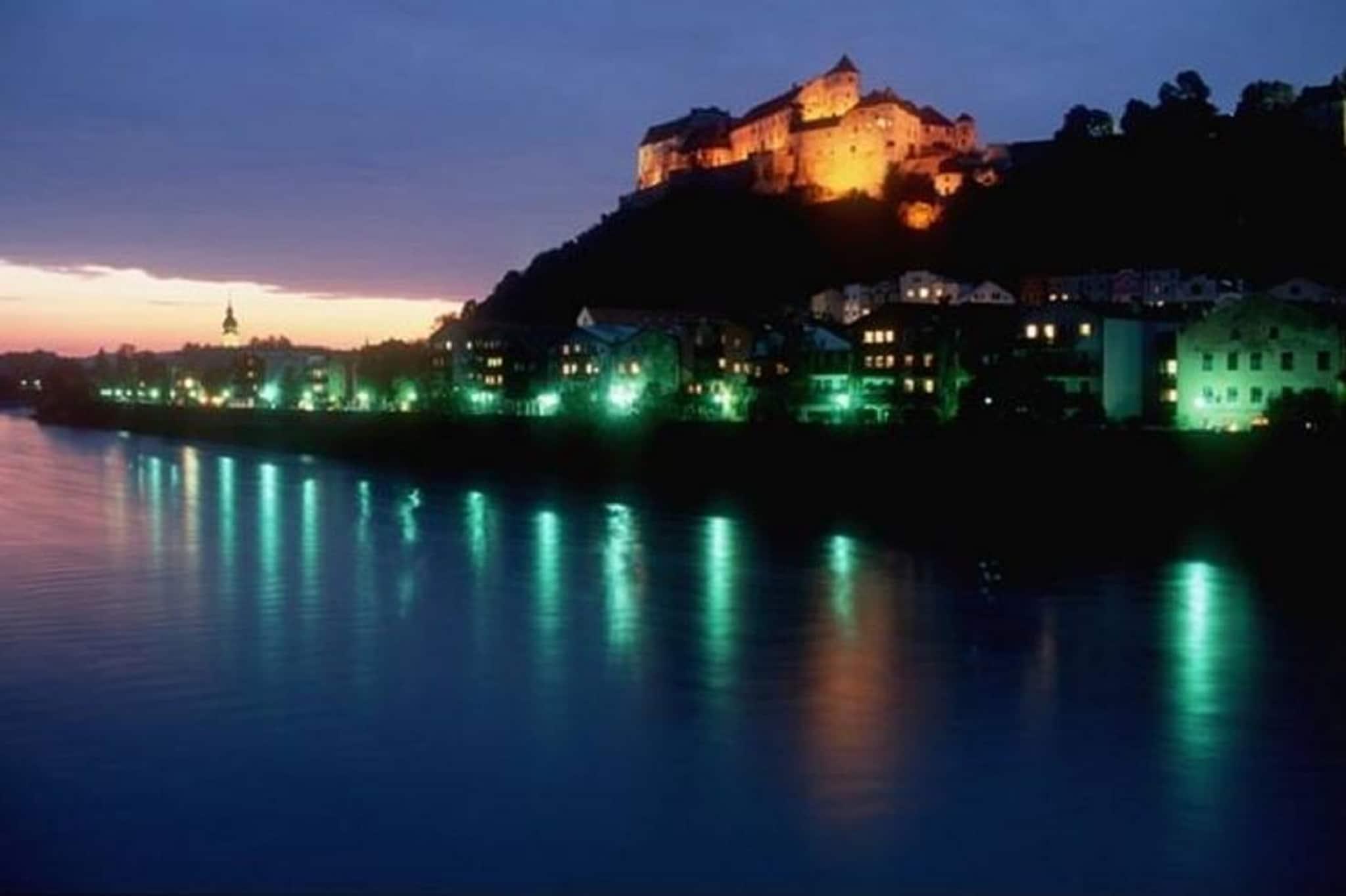 Dieses haustierfreundliche Ferienhaus in Tittmoning bietet einen gemütlichen und rustikalen Rückzugsort für Familien oder kleine Gruppen. Das Erdgeschoss verfügt über eine geräumige Küche mit Radio und Backofen, einen Wohn-/Schlafbereich mit Doppelschlafcouch, Etagenbett, Holzofen und privater Sauna. Ein von außen zugängliches Badezimmer und ein zusätzliches WC mit Urinal sorgen für zusätzlichen Komfort. Im Obergeschoss bietet ein Schlafzimmer mit Einzel- und Doppelbett sowie Sat-TV einen ruhigen Rückzugsort. Gäste profitieren von einer Holzzentralheizung, einer überdachten Terrasse, einem privaten Garten mit Gartenmöbeln und Spielgeräten für Kinder. E-Bikes stehen zur Verfügung, um die malerische Umgebung zu erkunden, und ein privater Parkplatz sorgt für eine gute Anbindung. Die Einrichtung ist praktisch und gemütlich und eignet sich ideal für Kurzaufenthalte und längere Ferien in der bayerischen Landschaft. In der Nähe können Sie die historische Burg Tittmoning erkunden, eine Festung mit Panoramablick und kulturellen Ausstellungen. Naturliebhaber können am nur 4 km entfernten Leitgeringer See entspannen oder auf dem romantischen Ponlachgraben spazieren gehen. Genießen Sie zum Essen herzhafte bayerische Kost im Gasthaus Peterlechner Brunnerwirt, schmackhafte asiatische Küche im China Restaurant Han-asia oder den Charme des Sees im Restaurant „Zur Almeinkehr“.