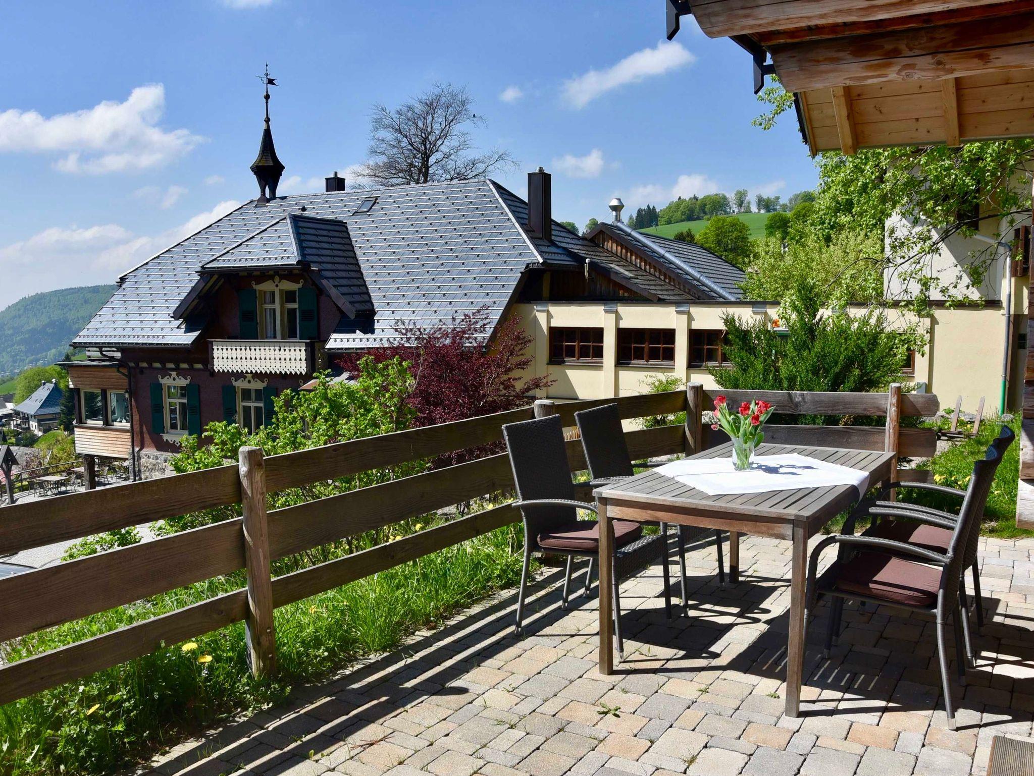 Alpenpanorama, das sich an klaren Tagen dem Auge bietet. Durch die erhöhte, solitäre Lage des Hotels, können Sie diese Schwarzwaldidylle wunderbar genießen.