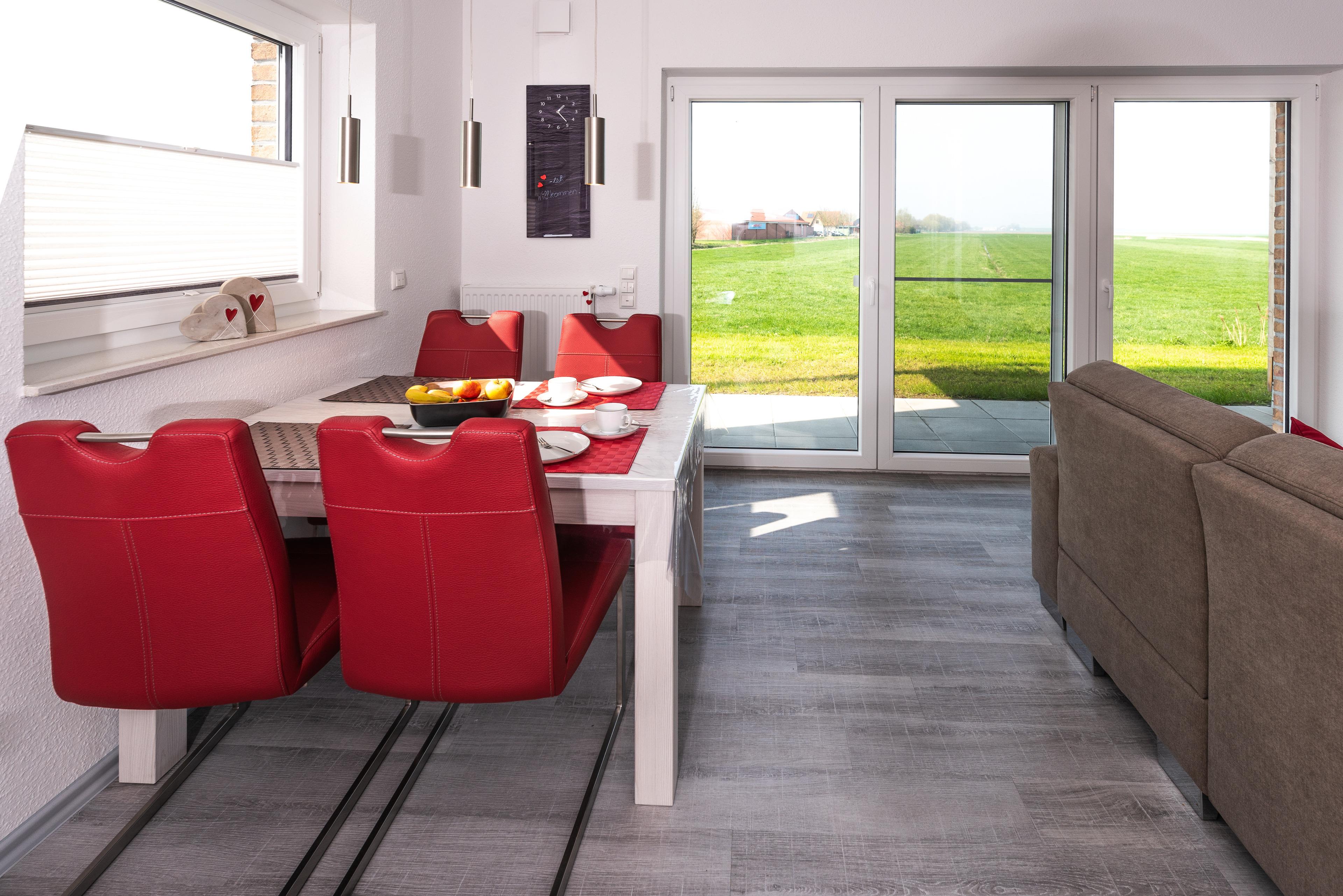 Modernes Reihenhaus in Tossens mit Sauna, Kamin und traumhaftem Deichblick für erholsame Ferien.