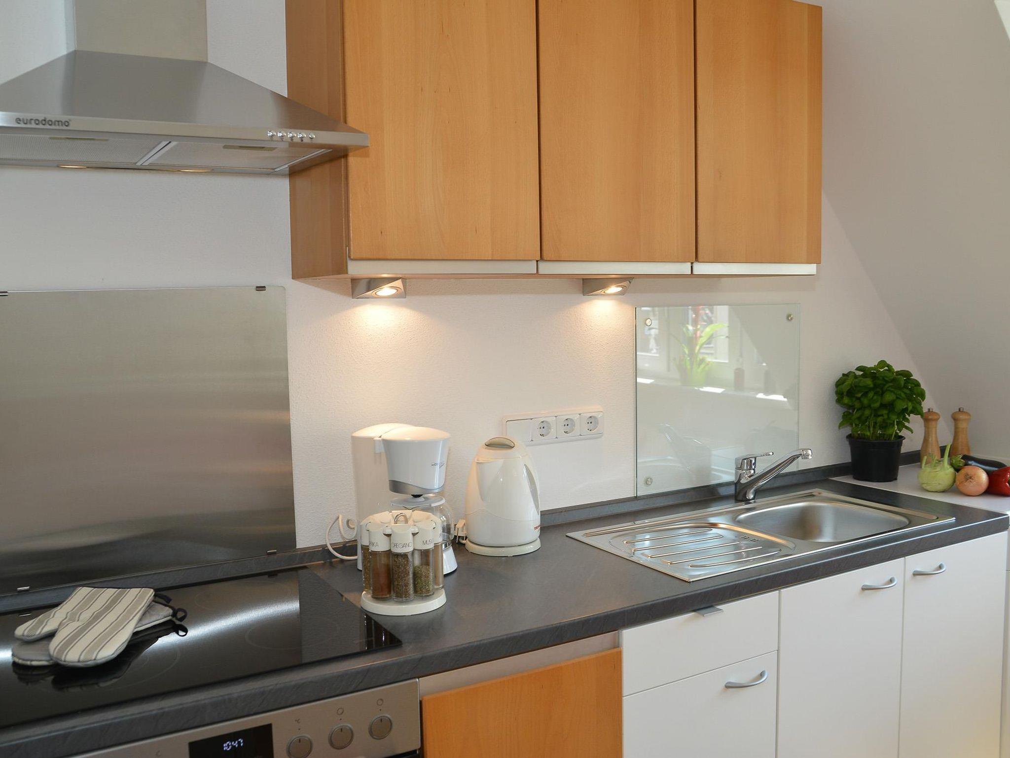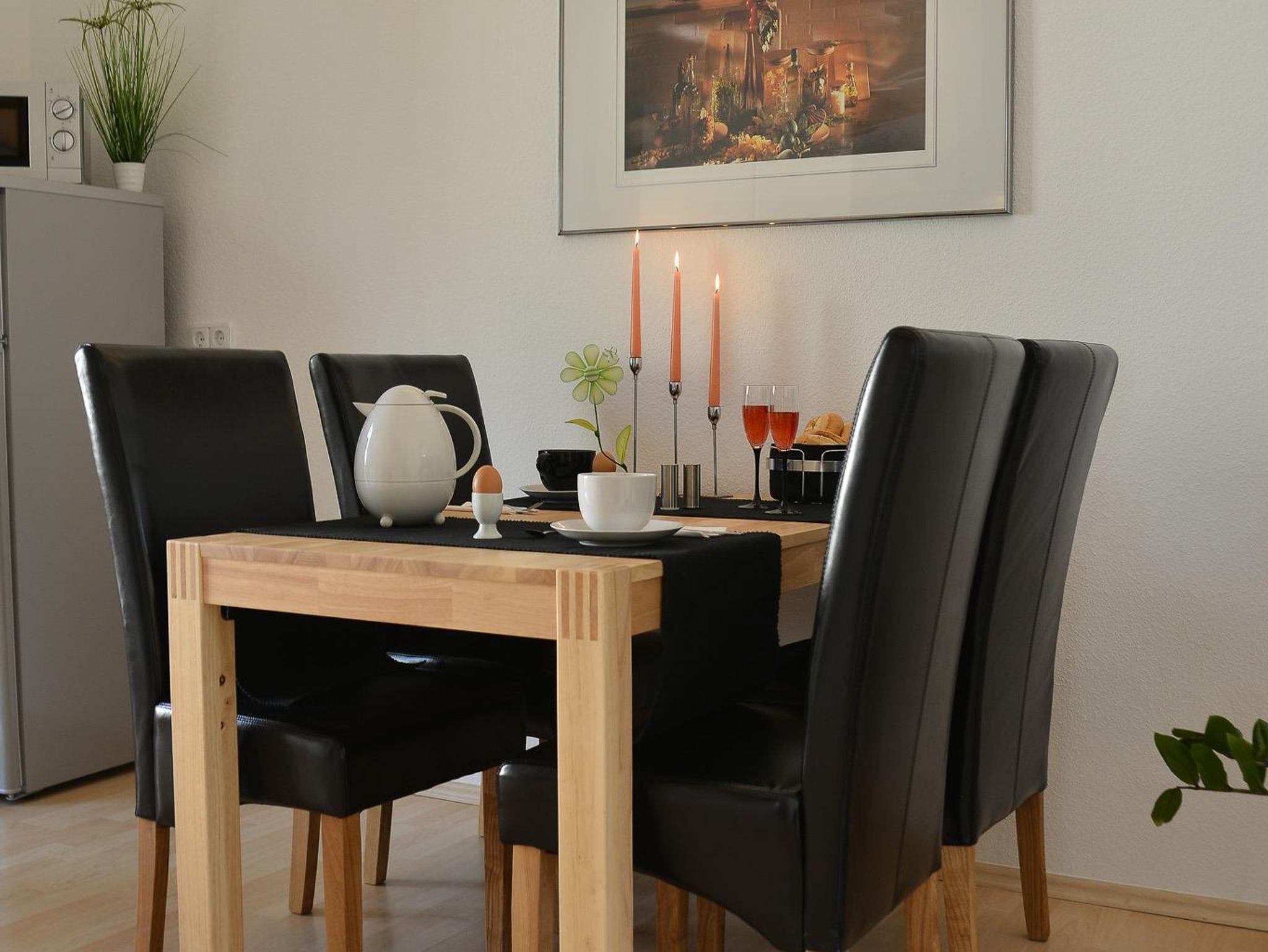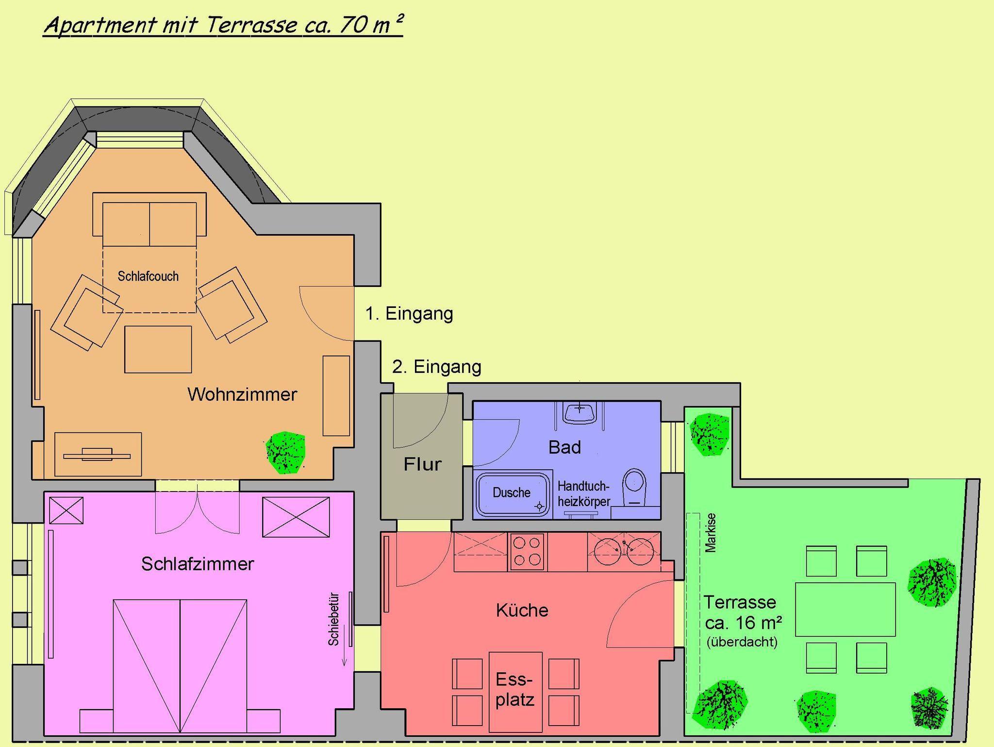 geeignet für 1-2 Personen, große überdachte Sonnenterrasse, separates, großes Wohnzimmer mit Couch, digitalem Sat-TV (42 Zoll), separates, geräumiges Schlafzimmer mit großem Doppelbett (2,00 x 2,00m), separate, große Wohnküche komplett ausgestattet, gemütlicher Essplatz, modernes Duschbad, kostenloser Internet-Zugang, Safe. Vor unserem Haus gibt es ausreichend öffentliche und kostenlose Parkplätze. Für Ihre Fahrräder gibt es eine kleine, videoüberwachte und verschließbare Fahrradgarage. Haustiere sind nicht gestattet.