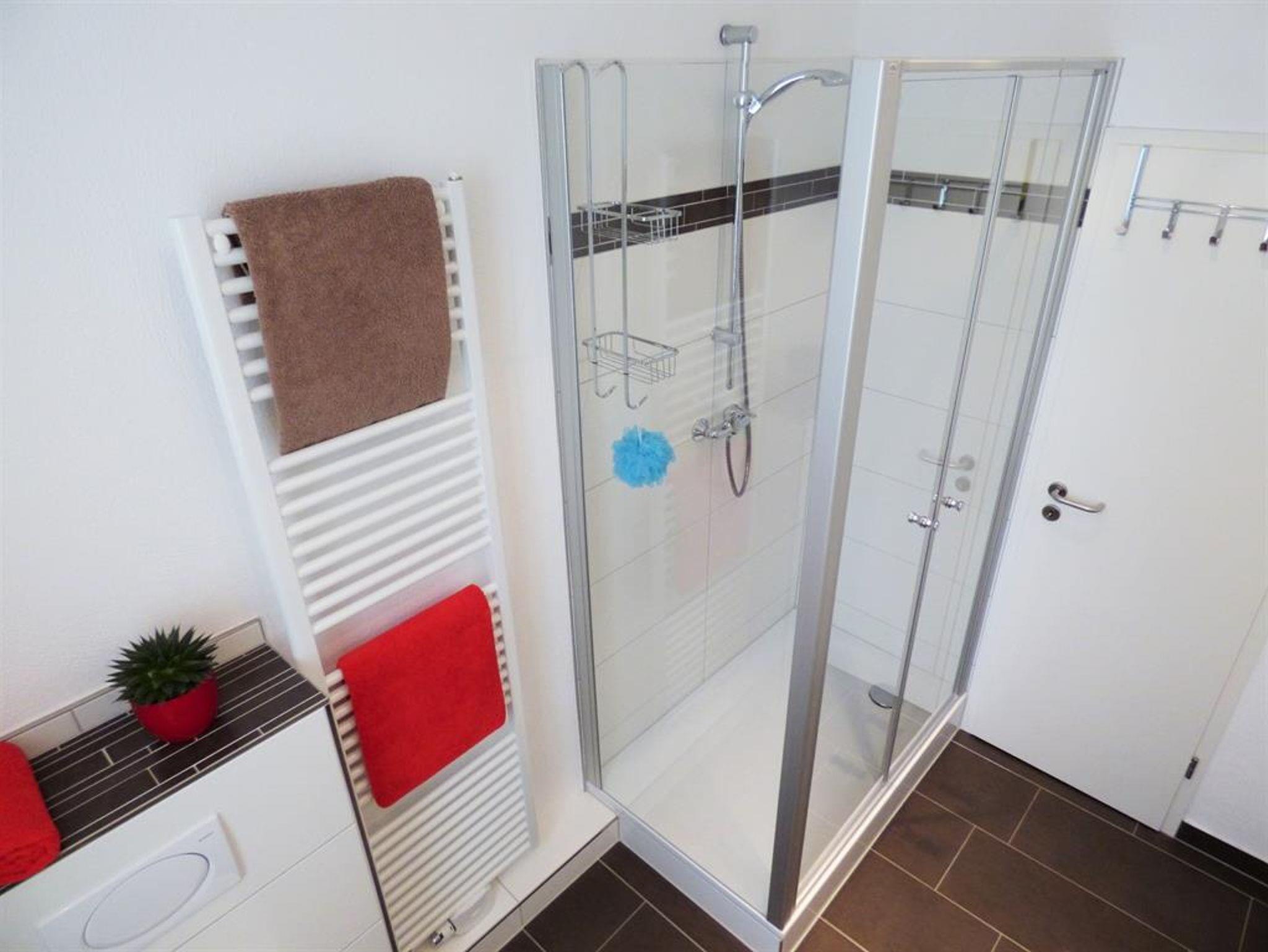 Die Wohnung im Obergeschoss ( Appartement 1) bietet neben einem Schlafzimmer mit großem Doppelbett, ein Wohnzimmer, ein modernes Duschbad, eine Küche mit gemütlichem Essplatz sowie eine große überdachte Sonnenterrasse.