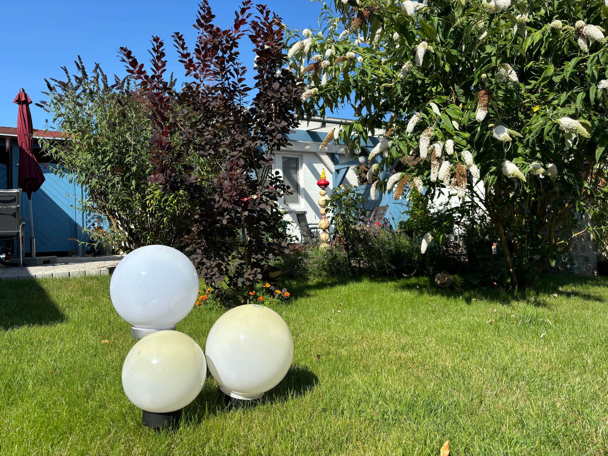 Der Garten steht zur gemeinsamen Nutzung beider Bungalows bereit und lädt zum Entspannen, Sonnenbaden oder Spielen ein. Zusätzlich verfügen beide Objekte über eine eigene Terrasse. Der Strand ist nur 1,8 km entfernt, sodass Sie die Ostsee bequem zu Fuß oder mit dem Fahrrad erreichen können.