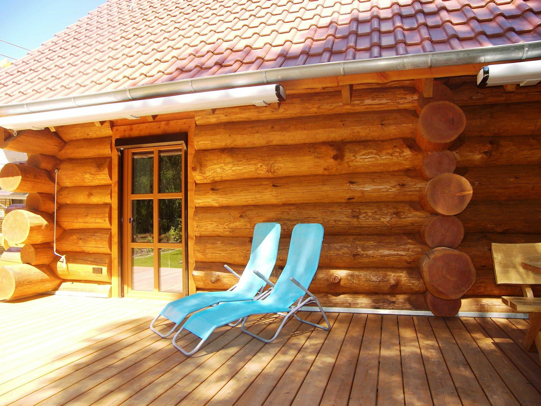 Auf einem naturnahen, parkähnlichen 1.000 m² großen Grundstück mit Saunahaus, Carport , Grillplatz und viel Platz um die Seele baumeln zu lassen, befindet sich das Naturstammhaus aus Douglasienholz mit 2 Wohnungen, die einzeln aber auch komplett als Ferienhaus gemietet werden können. Große Holzterrassen um das Haus laden zum Entspannen und Verweilen ein.