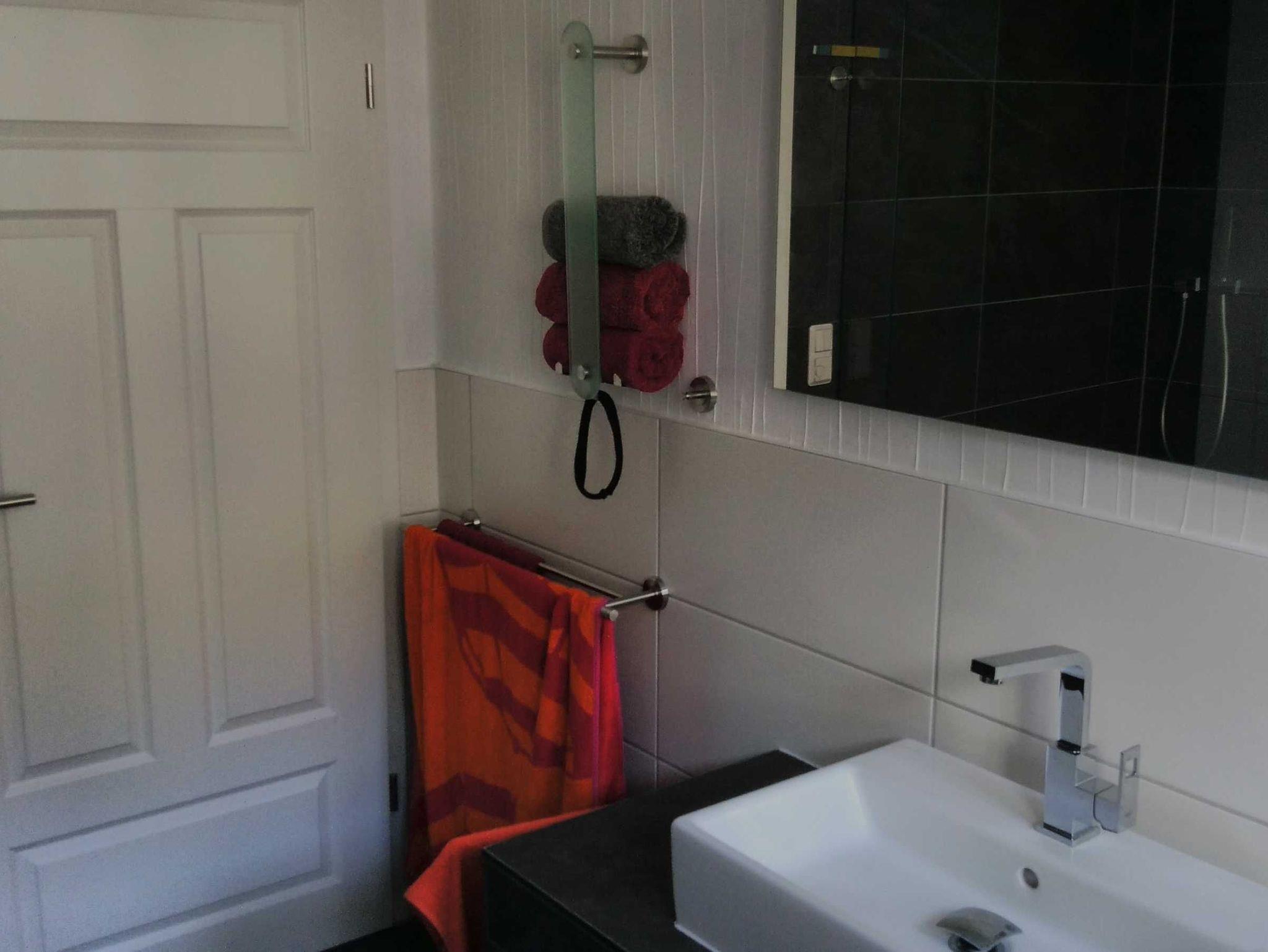 Exklusiv und freundlich eingerichtetes Bad mit Handtücher, Föhn und Wäsche inclusive.