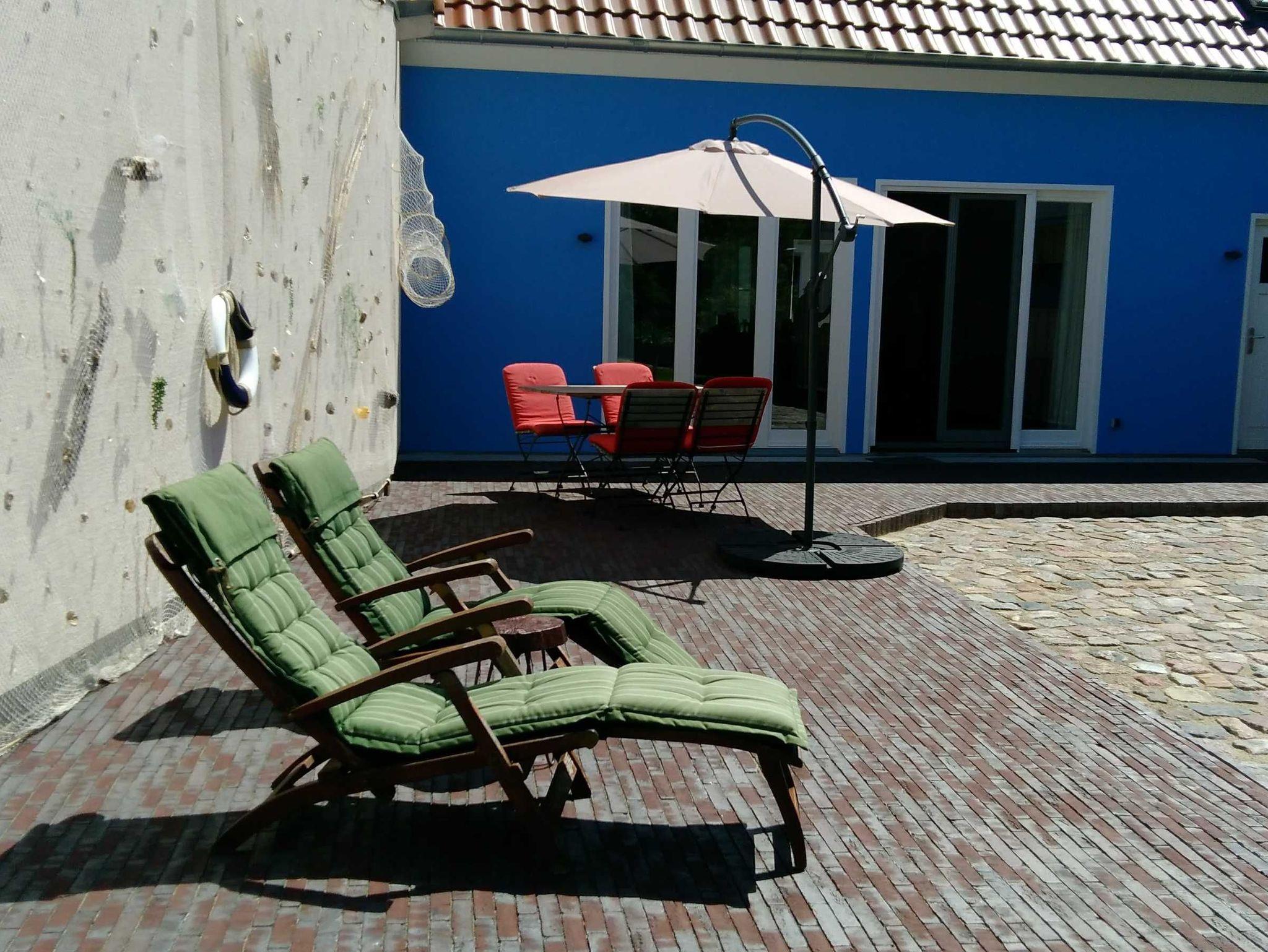 Das gemütliche Ferienhaus Ueckergucker fällt alleine schon durch seine strahlend blaue Außenfarbe auf. Dieser maritime Charakter zieht sich durch die gesamte Inneneinrichtung: ein großzügiger, offener Wohn- und Küchenbereich mit einer großen Kücheninsel, der Eingangsbereich mit einer antiken Garderobe, ein anheimelnder Kamin für kalte Herbsttage und gemütliche Bauernbetten in den beiden Schlafzimmern in der ersten Etage. Durch den nach oben offenen Grundriß erhält das Haus seine luftige Atmosphäre. Ein Gästebad im Erdgeschoß und ein Hauptbad im ersten Stock komplettieren die Innenaustattung.