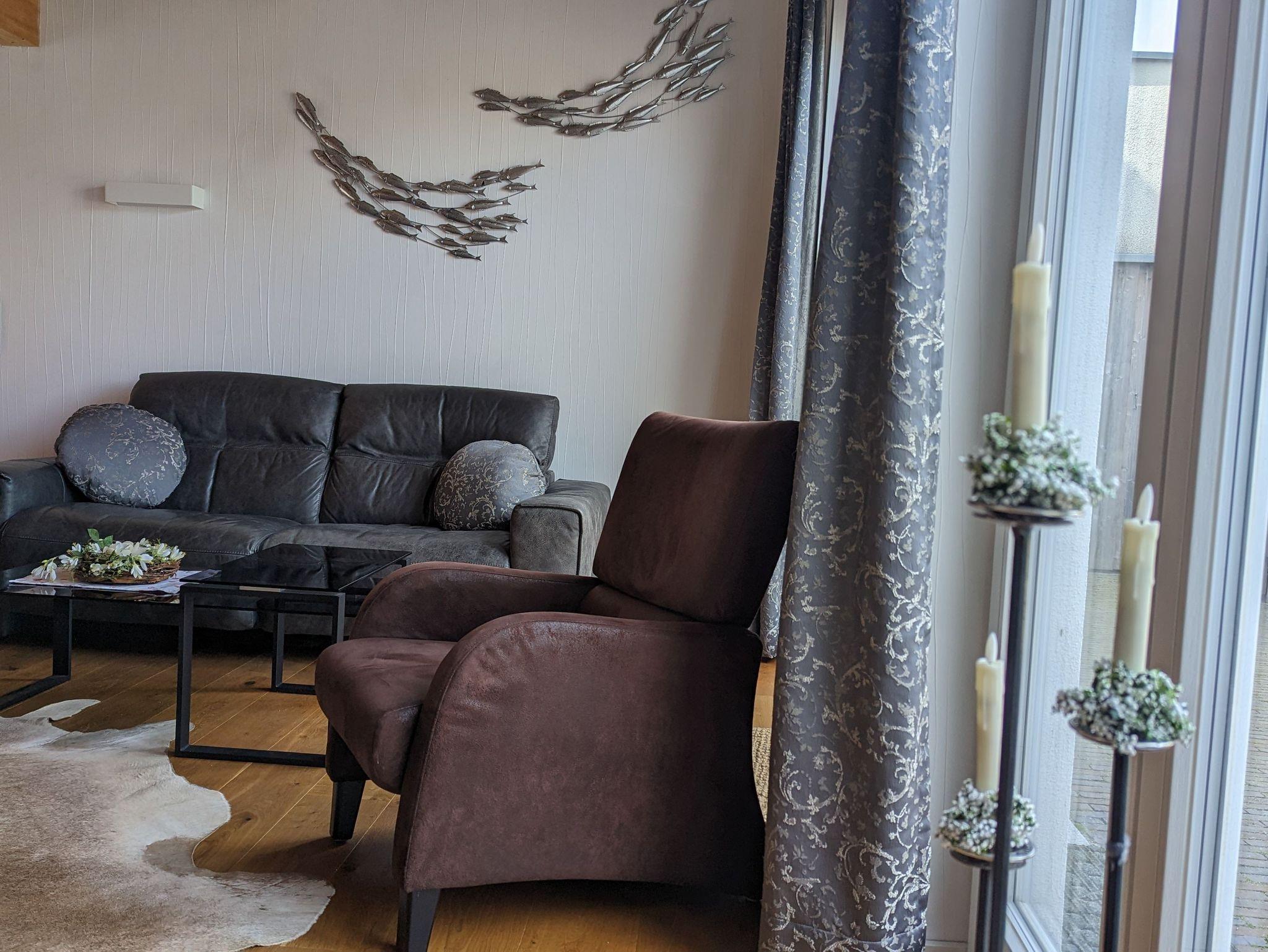 Neues, Licht durchflutetes, offenes Stadthaus, 2017 fertiggestellt, 100 m². Technisch voll ausgerüstet. Schöner großer Garten mit Grill, Sonnen- und Spielwiese und Hängematte. 2 Schlafzimmer, 1 Bad, 1 Gäste-WC. Eine Aufbettung ist möglich. Offener Koch-Ess-Wohnbereich (ca. 50 m²), hochwertig eingerichtet. Holzfußboden, Fußbodenheizung. Die Schlafzimmer und das Bad sind über eine Treppe innenliegend zu erreichen.