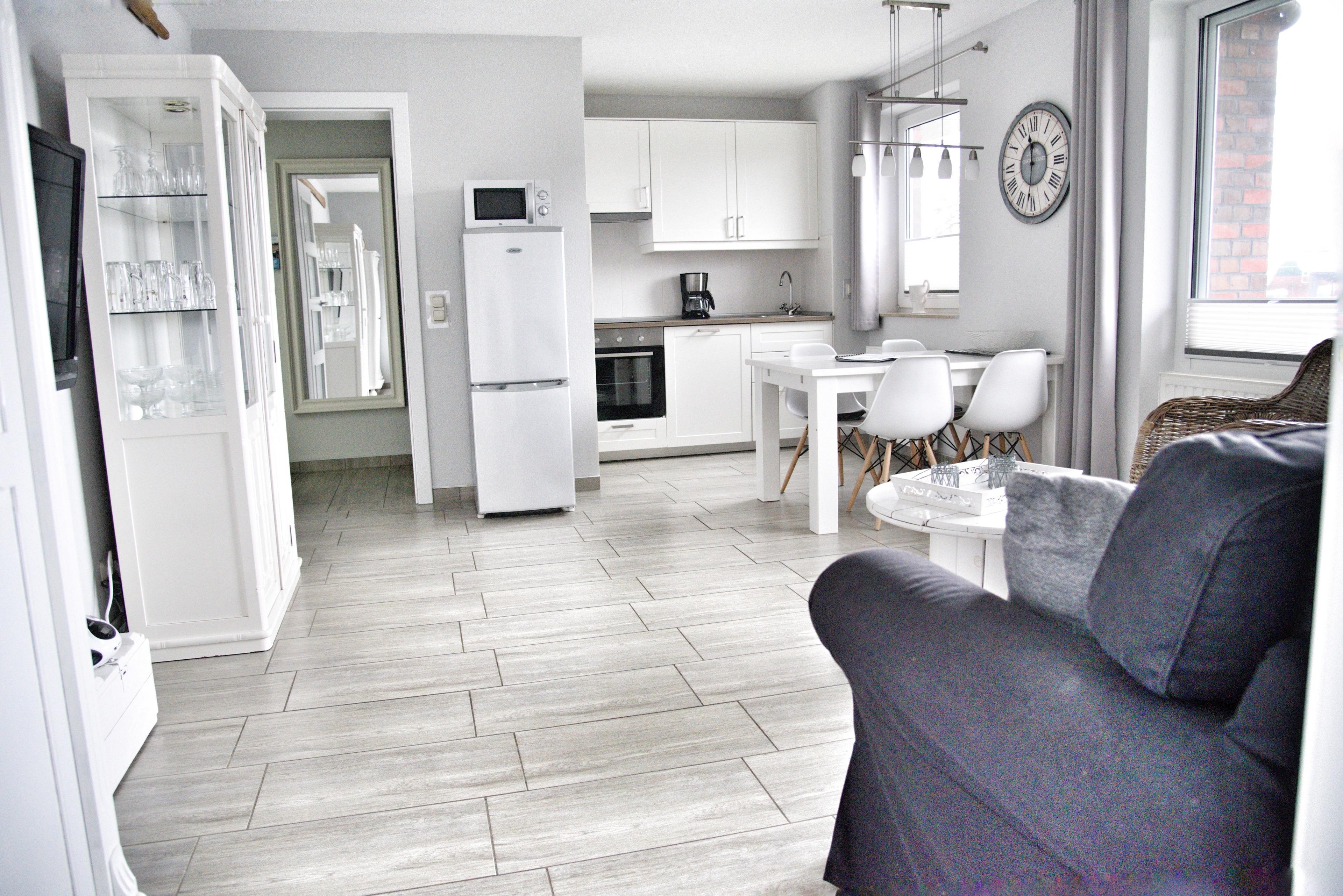 Ihre neue Wohnküche ist zum Wohnzimmer hin offen, was den Raum noch großzügiger erscheinen lässt. Die Sterneküche ist für Sie voll ausgestattet. Bestandteile sind unter anderem ein Cerankochfeld, ein Backofen, eine Kaffeemaschine, eine Mikrowelle, viel Geschirr, ein Geschirrspüler sowie eine große Kühl- und Gefrierkombination. Das neu geflieste Badezimmer hält eine Dusche, viele Ablageflächen und einen Fön für Sie bereit. In Ihrem Flur finden Sie eine Garderobe, einen großen Spiegel und Reinigungsgeräte vor. Die Ferienwohnung Bilge befindet sich im Erdgeschoss des Hauses Albatros im Eingang 2 und verspricht kurze Wege zum Strand. In unmittelbarer Nähe dieser Ferienwohnung befinden sich weitere Ferienappartements unserer Gesellschaft.
