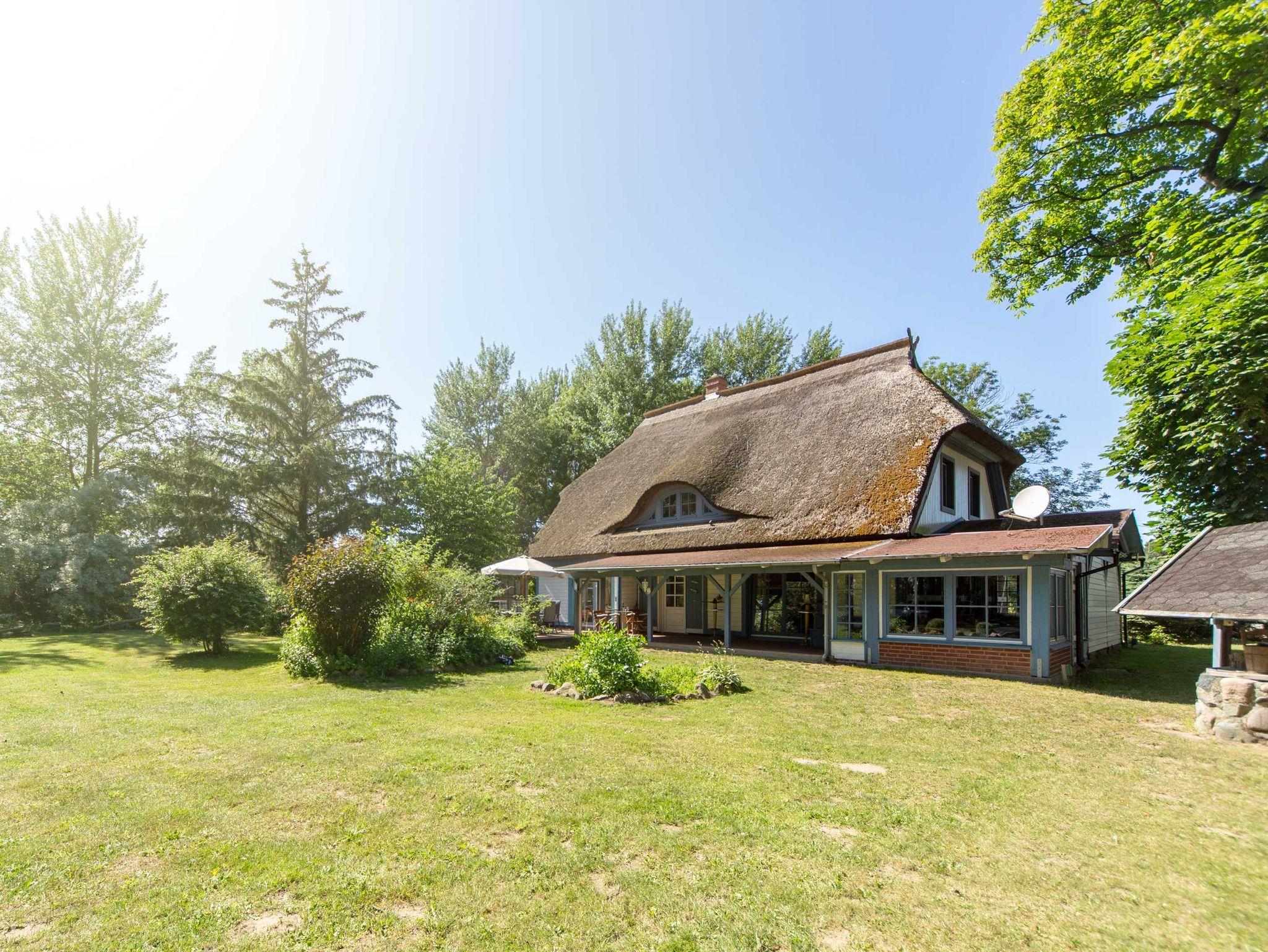 Dieses Reetdachhaus im Nationalpark bietet naturnahen Komfort und viel Raum für Familien nahe dem Bodden.