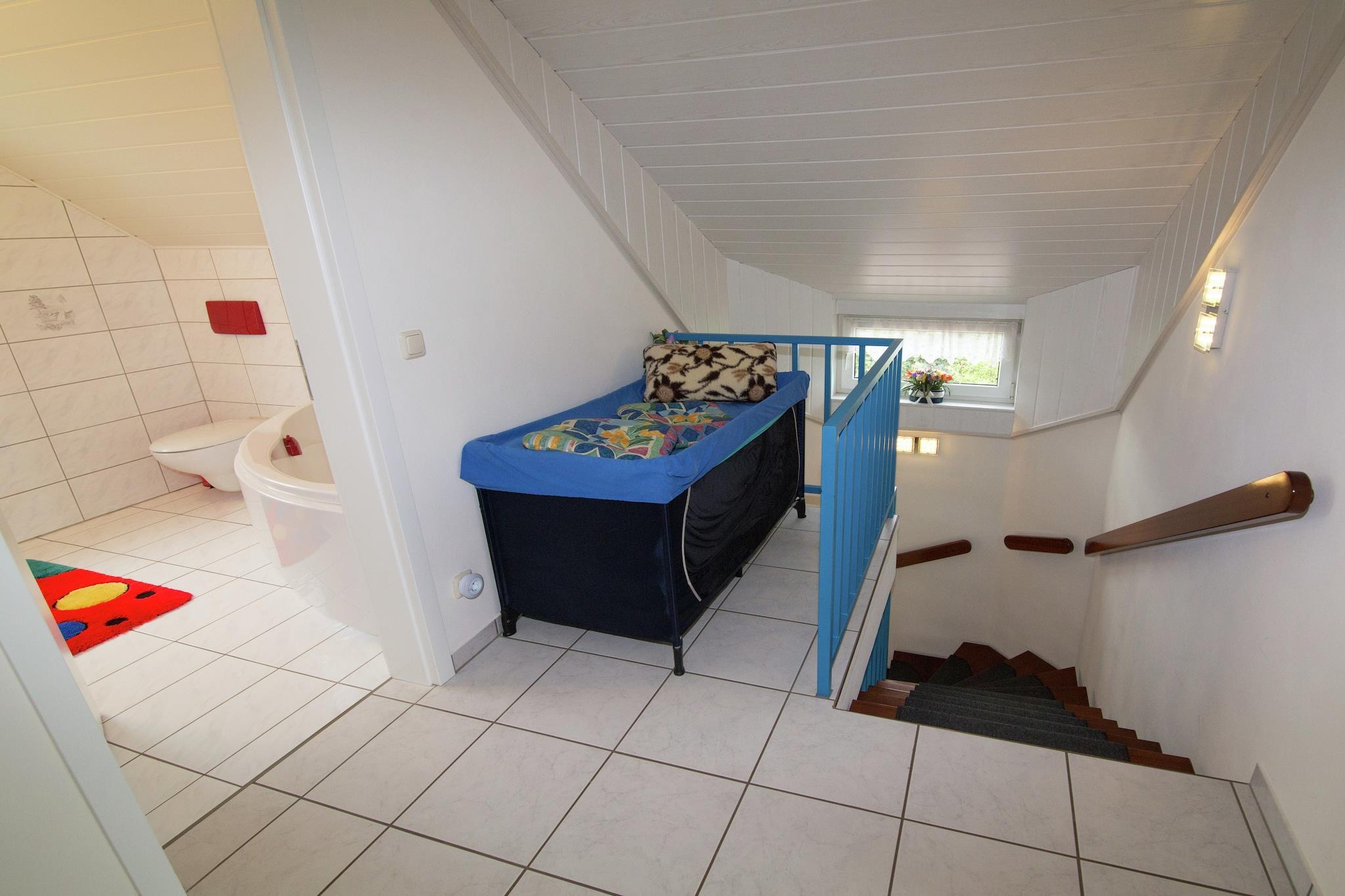 Parterre: (Eingang, Diele, Wohnzimmer(Kaminofen), offene Küche(TV(Satellit), Kochherd(Ceranfeld), Kaffeemaschine, Backofen, Mikrowelle, Spülmaschine, Tiefkühlschrank), Badezimmer(Dusche, Toilette, Urinal)) In der 1. Etage: (Schlafzimmer(Schlafcouch 1 Pers., Doppelbett, Balkon), Schlafzimmer(2x Einzelbett), Badezimmer(Sitzbadewanne, Toilette)) Carport, CD-Spieler, Stereoanlage, Gartentüren, Balkon, Heizung(Fußbodenheizung), Terrasse, Garten(umzäunt), Gartenmöbel, Grill, Parkplatz, Kinderbett, Hochstuhl, Treppenschutzgitter, 2x Hundekorb, 4x Hundeschale