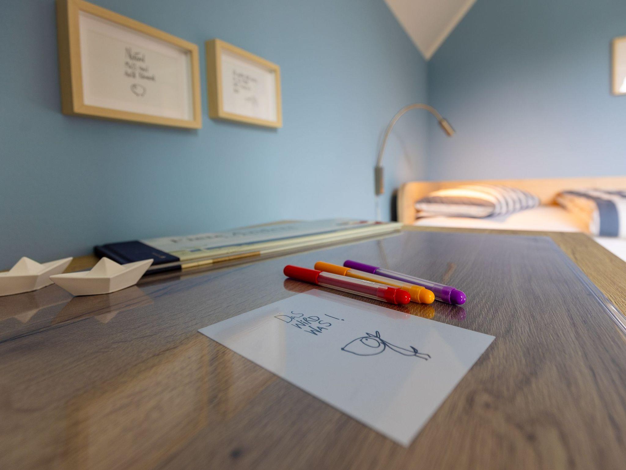 Der Neubau bietet Platz für bis zu 6 Personen und verfügt über 3 gemütliche Schlafzimmer im Obergeschoss, in denen Sie nach einem ereignisreichen Tag zu Ruhe kommen können. Zwei Schlafzimmer verfügen über je ein 1,80m breites Doppelbett sowie je einen Fernseher, das dritte Schlafzimmer ist als mögliches Kinderzimmer mit einem ausziehbaren Bett ausgestattet.