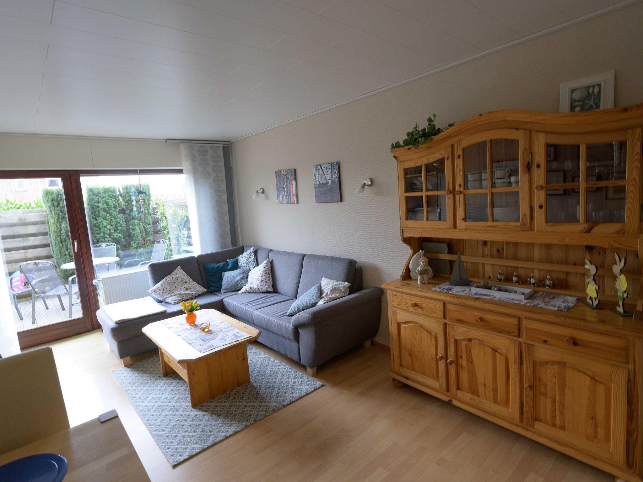 Im Erdgeschoss befindet sich das großzügige, kombinierte Wohn- und Esszimmer, welches insbesondere durch seine gemütliche Einrichtung und die vielen maritimen Details für eine besondere Wohlfühl-Atmosphäre sorgt. Daran angeschlossen befinden sich die vollständig ausgestattete Küchenzeile sowie die windgeschützte Südterrasse.