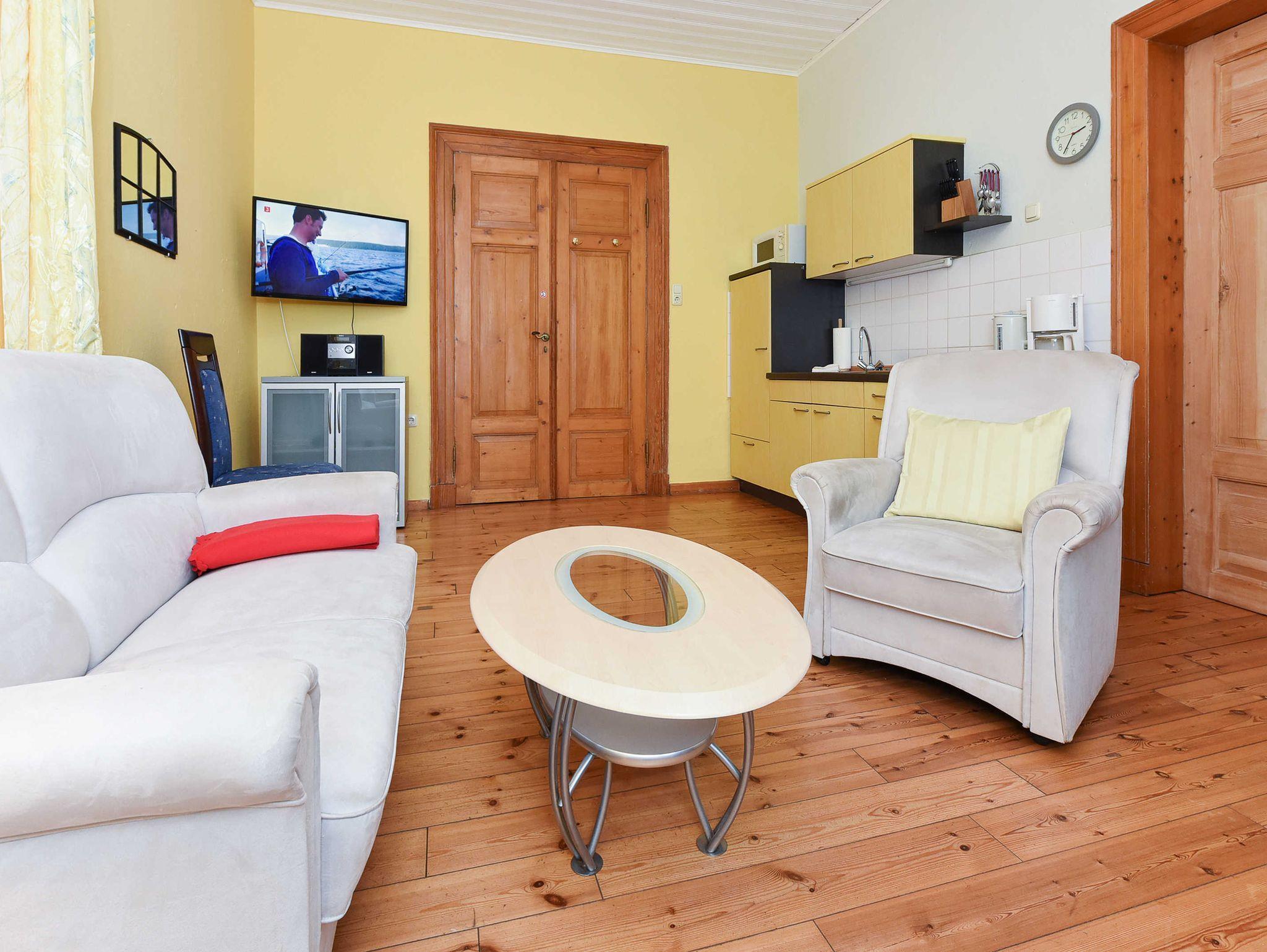 Wohnraum mit integrierter Küche, Schlafzimmer, Badezimmer mit Dusche, Waschtisch und WC, Erdgeschoss, Internetzugang über WLAN möglich, optimal für 2 Personen.
