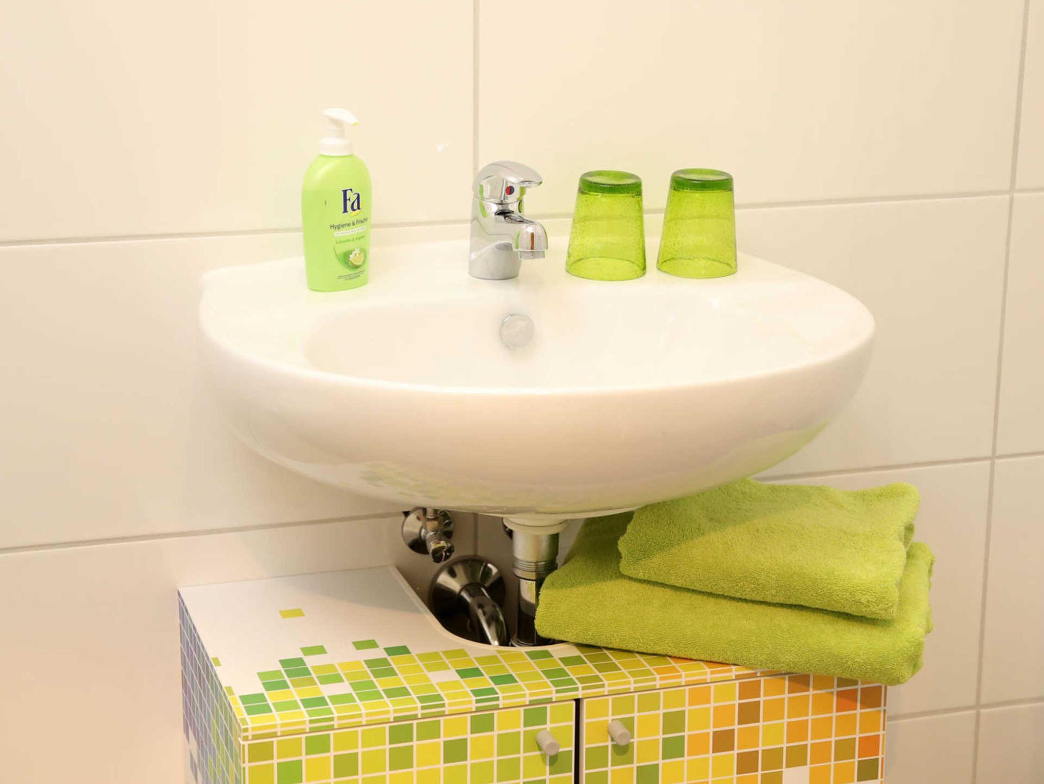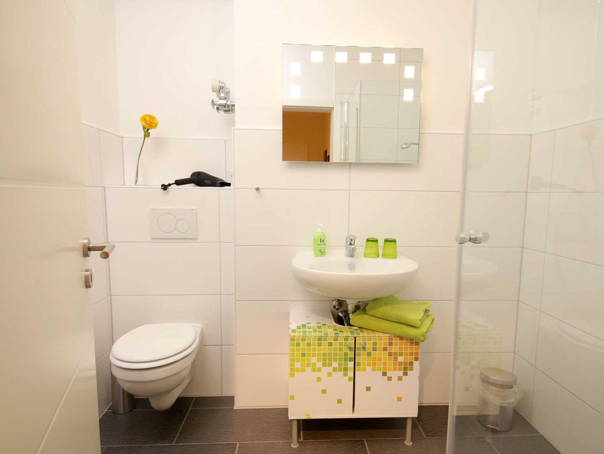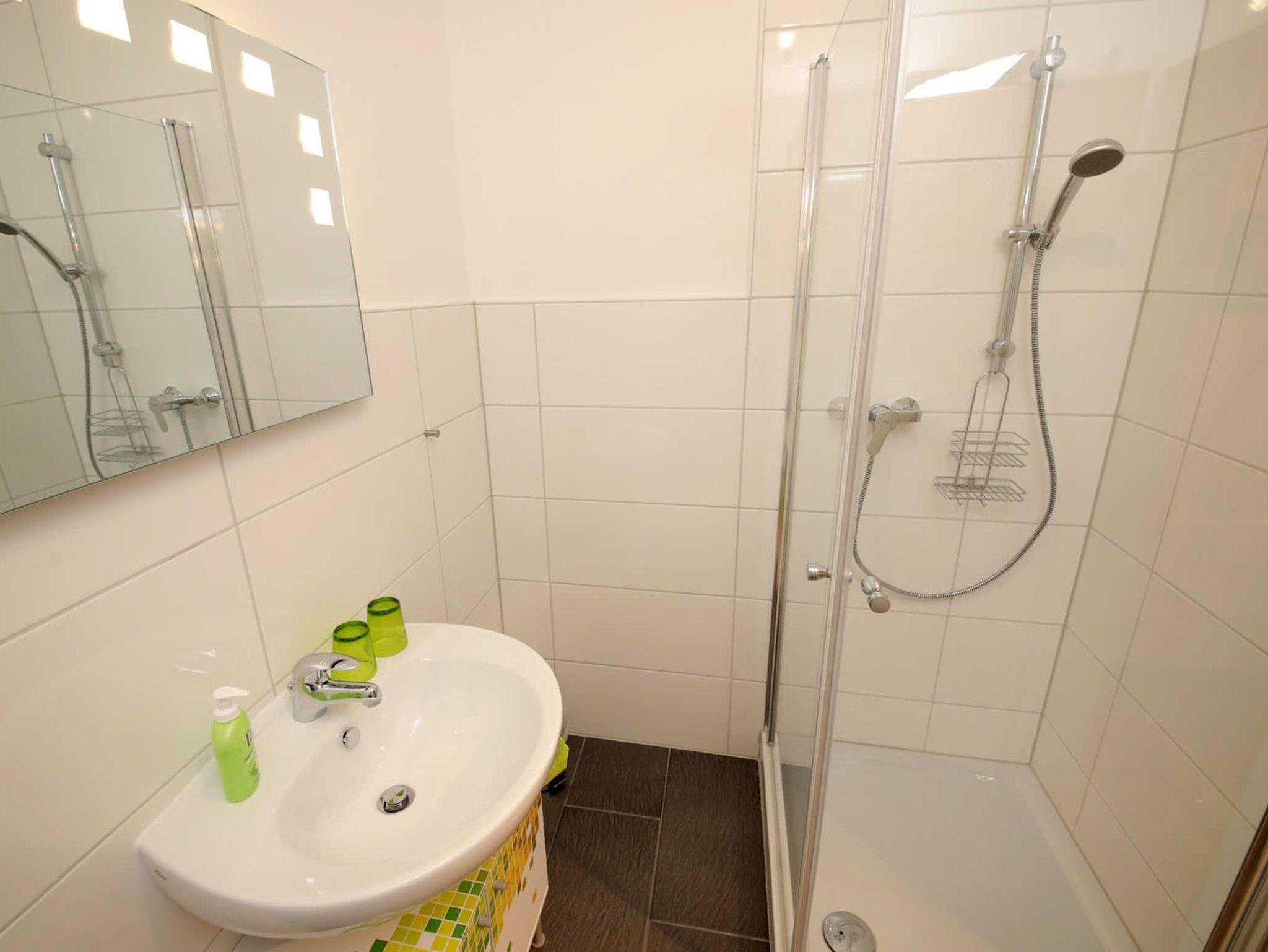 Der Koch-/Ess-Bereich wurde mit einer modernen Küchenzeile ausgestattet (u. a. mit Mikrowelle mit Grillfunktion), das Bad mit Dusche/WC und Handtuchheizung.