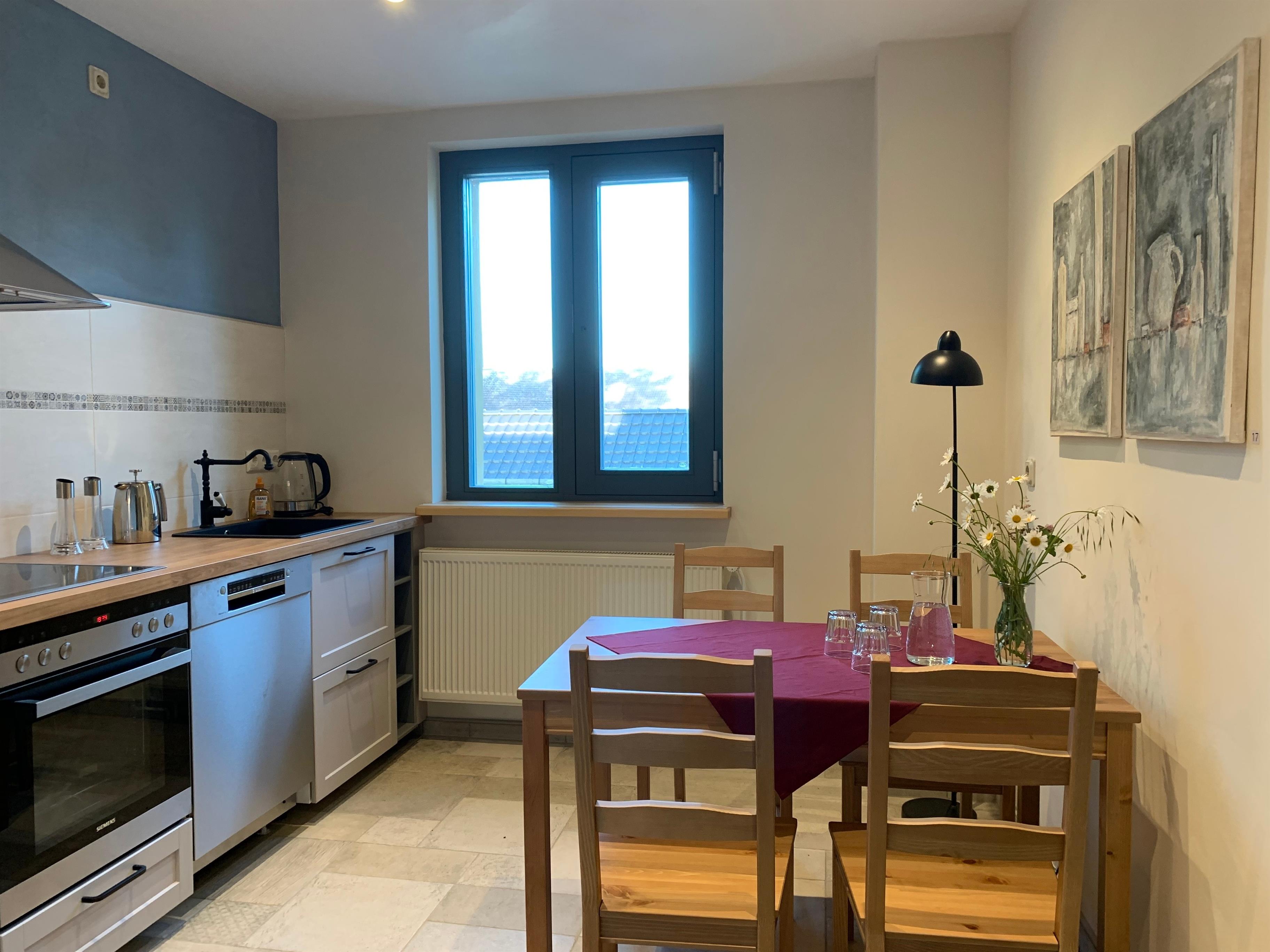 Die 3-Zimmer-Ferienwohnung ist ein Teil unseres Objektes . Sie hat ein Schlafzimmer mit zwei Betten (separat oder zusammenzustellen), ein großes Wohnzimmer mit Kamin und großem Esstisch, einer ausziehbaren Schlafcouch (140×200) und der Möglichkeit zum Aufstocken. Des Weiteren gibt es ein sehr kleines (Spiel)-zimmer, ein großes Bad und ein separates WC. Die Küche ist komplett ausgestattet.