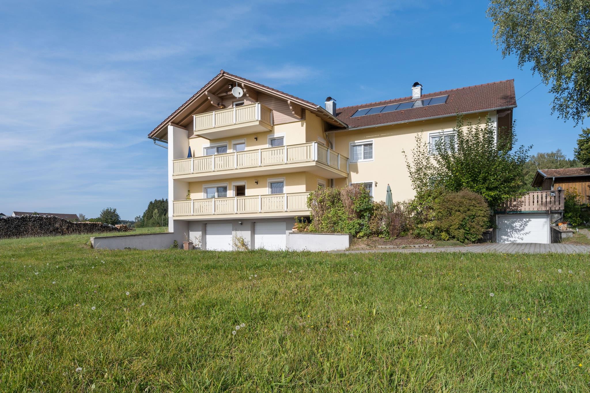 Diese gemütliche Wohnung im ersten Stock in Viechtach-Wiesing bietet einen ruhigen Aufenthalt im Herzen des Bayerischen Waldes. Ideal für Paare oder kleine Familien, verfügt sie über drei Schlafzimmer, ein helles Wohn-/Esszimmer mit Sat-TV und DVD-Player sowie eine voll ausgestattete offene Küche mit Backofen, Mikrowelle, Geschirrspüler und Kaffeemaschine. Der private Balkon und der Gemeinschaftsgarten mit Grill und Liegestühlen laden zum Entspannen im Freien ein. Eine Ladestation für Elektroautos sorgt für modernen Komfort. Jedes Schlafzimmer verfügt über ein Waschbecken, das Badezimmer ist mit Dusche, WC und Haartrockner ausgestattet. Ein Kinderbett und ein Sonnenschirm machen die Wohnung familienfreundlich, und die Gemeinschaftsterrasse lädt zum Entspannen ein. Highlights inklusive: Alle verbrauchsabhängigen Energiekosten Bettwäsche und Handtücher WLAN In der Nähe finden Sie das Kristallmuseum Viechtach mit seinen schillernden Kristallausstellungen, die kunstvolle Gläserne Scheune und die malerische Ruine der Burg Neunußberg. Zum Essen empfehlen wir den Blossersberger Keller mit bayerischen Klassikern oder das Schützenhaus mit herzhaften regionalen Gerichten. Ob Sie Waldwege erkunden oder die lokale Kultur entdecken möchten – diese Wohnung ist der perfekte Ausgangspunkt für Ihr bayerisches Abenteuer.