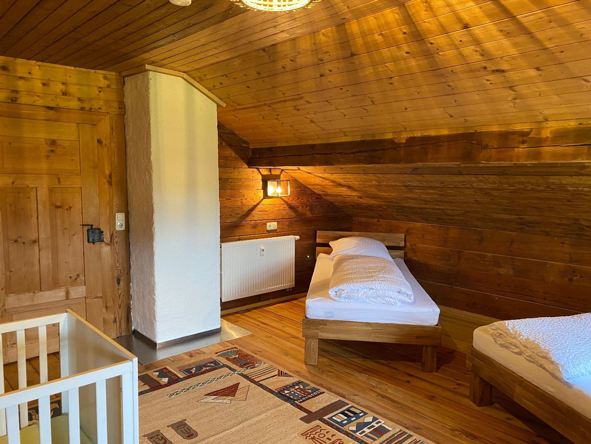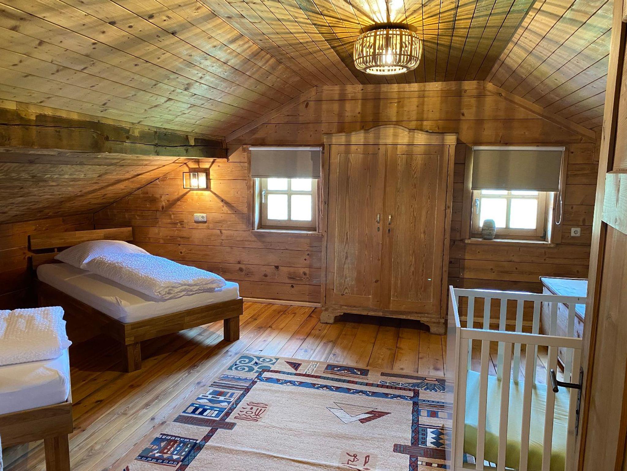 In einem alten Walderhaus was unser Opa/Uropa (Bauunternehmer) vor einigen Jahren von Neunußberg nach Bärndorf versetzten lassen hat. Es wurde nicht nur vor dem Verfall gerettet, sondern hat dem Besitzer ein uriges, heimeliges Zuhause geboten und nun haben wir es für Sie zu einem Ferienhaus umgebaut wo Sie in idyllischer, ruhiger Lage Ihre Seele baumeln lassen können. Unser Ferienhaus mit 120 m2 Wohnfläche über 2 Etagen bietet Platz für 6 Personen. Das gemütliche Wohnzimmer mit Flachbild-TV lädt zum Verweilen ein. Die komplett ausgestattete Küche mit Geschirrspüler, Kühlschrank mit Gefrierfach, Mikrowelle, Kaffemaschine, Herd mit Backofen, Wasserkocher lässt keine Wünsche offen. Das Ferienhaus verfügt über 2 Schlafzimmer mit einem 4 Einzelbettzimmer und 2 Einzellbettzimmer mit Babybett. Die 2 Bäder mit jeweils einer Duschkabine, WC und Waschbecken runden das Gesamtbild ab. Zum Reinigen Ihrer Kleidung steht Ihnen eine Waschmaschine und ein Trockner für einen kleinen Aufpreis zur Verfügung. Vor allem im Sommer können Sie draussen auf der kleinen Terrasse gemütlich den Grill anmachen. Das W-Lan und den Parkplatz können Sie kostenfrei nutzen. Bitte beachten Sie Haustiere sind nicht erlaubt. Bei Rückfragen stehen wir Ihnen gerne zur Verfügung.