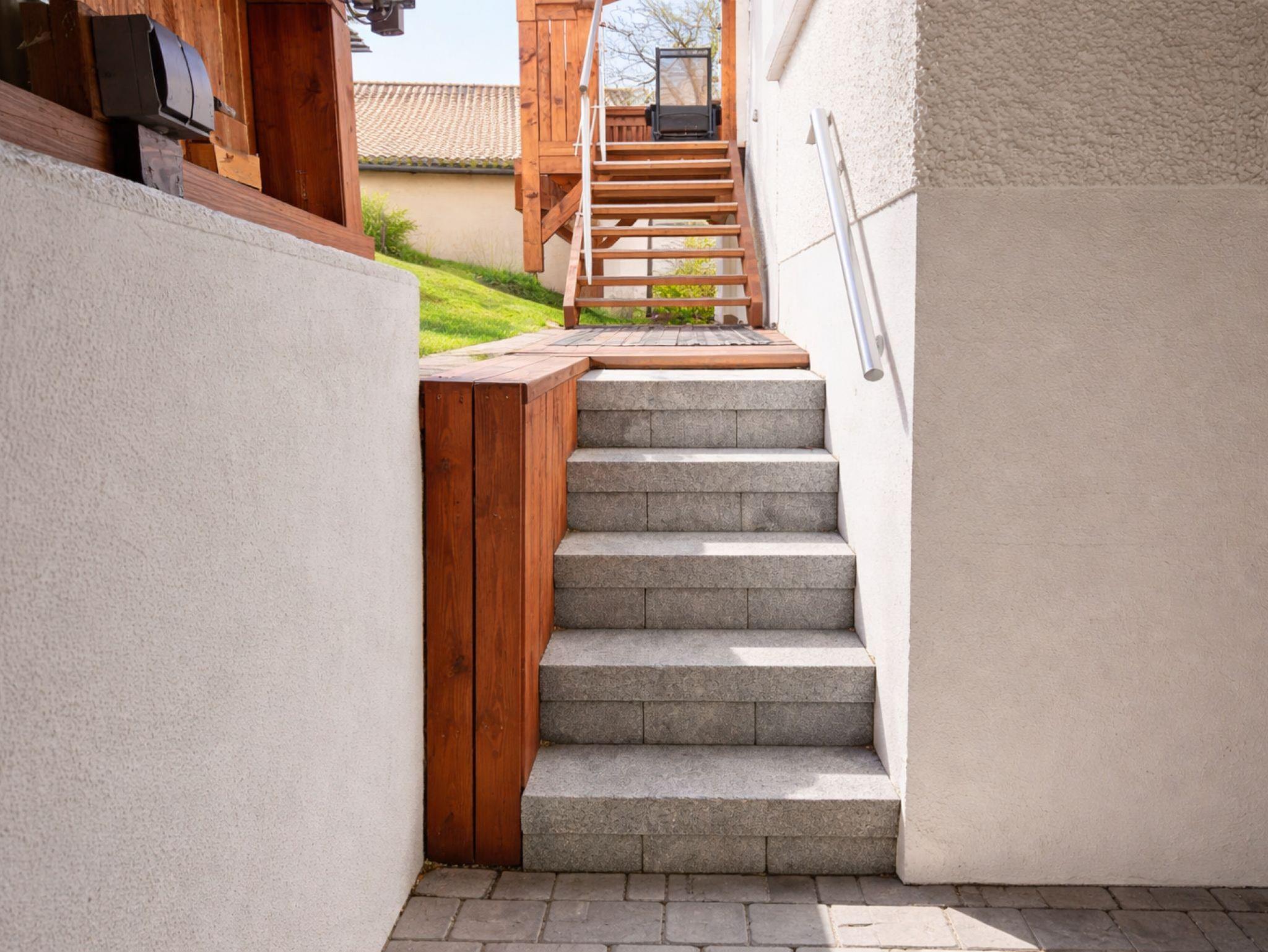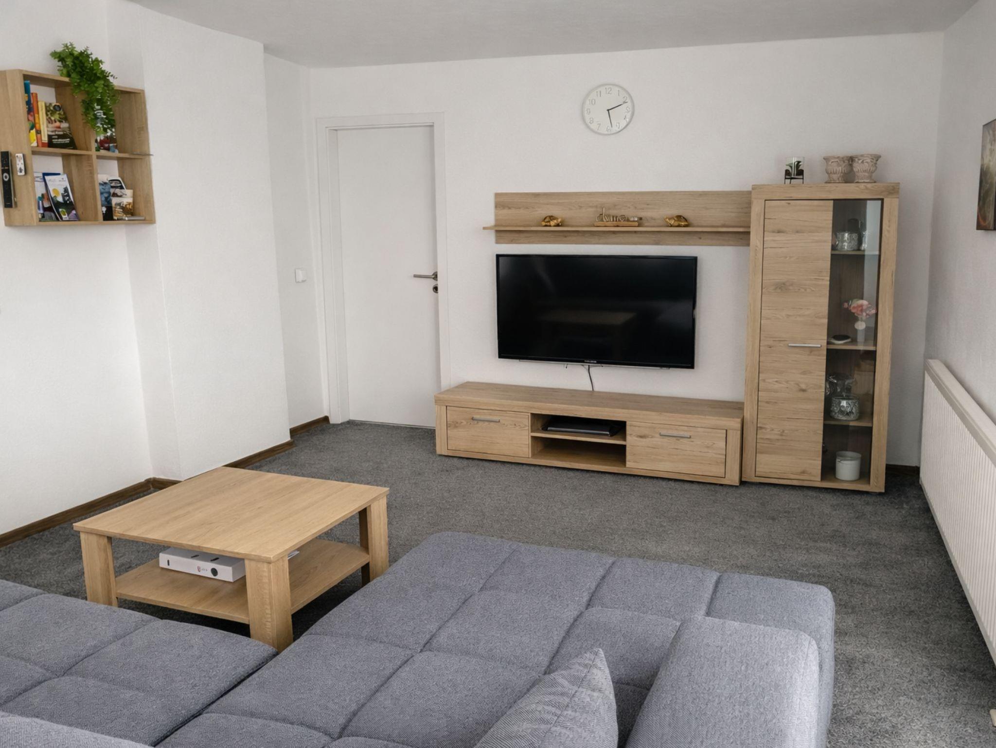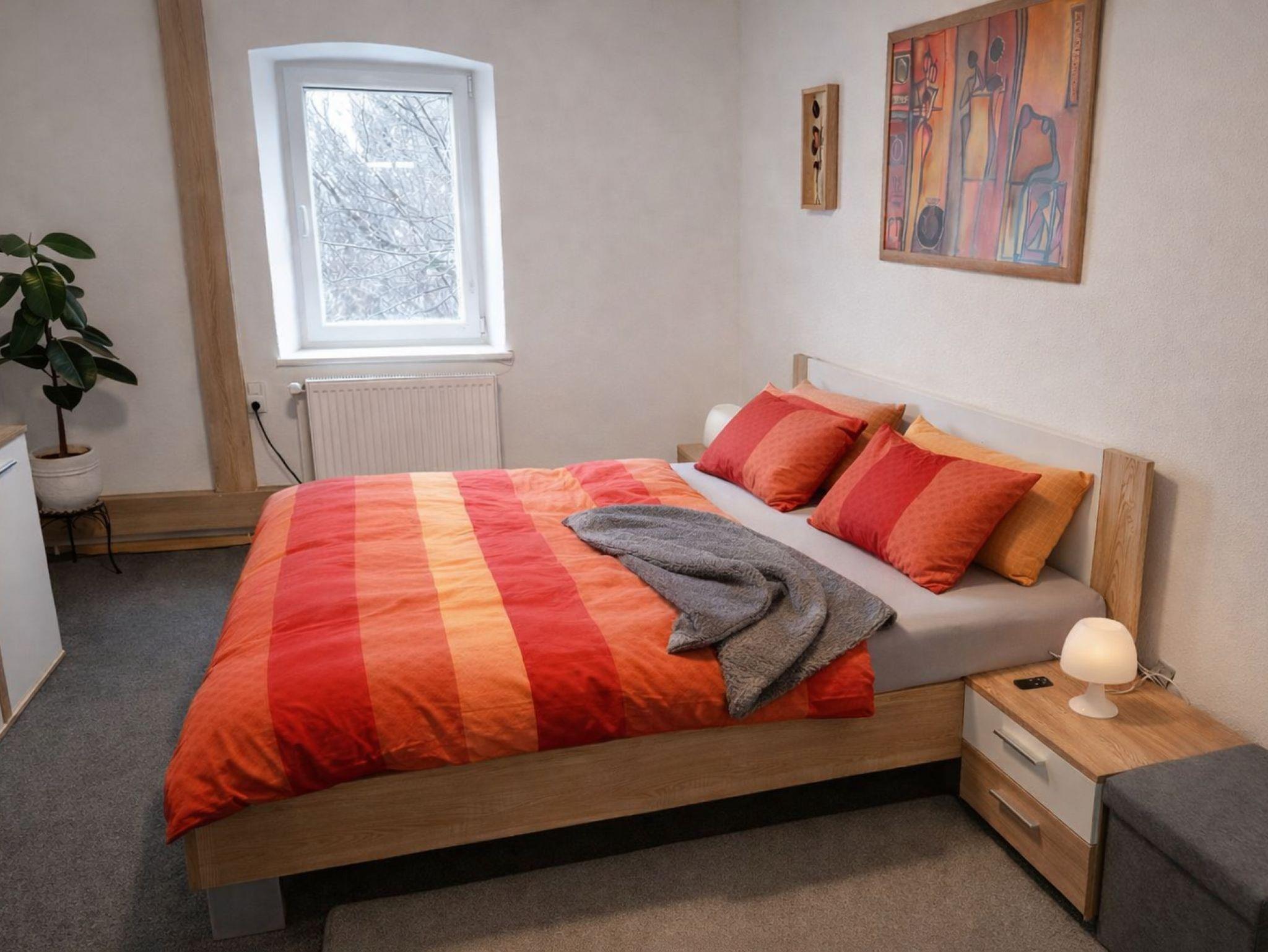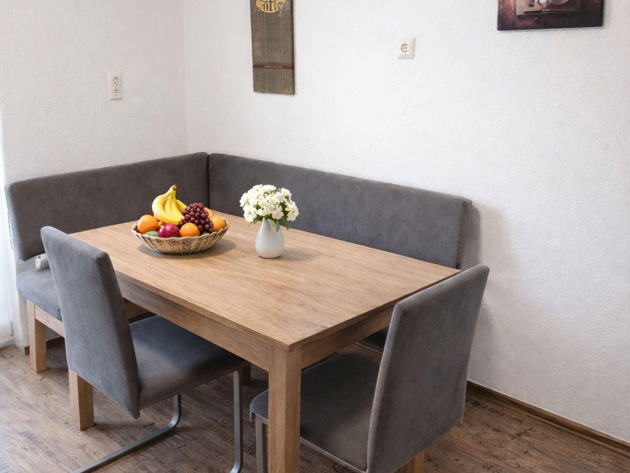 Die Ferienwohnung Zur Wacht ist 65qm groß und befindet sich im 1. Stock, ist für 5 Erwachsene Personen und ein Kleinkind ausgelegt. Im Schlafzimmer befindet sich ein Doppelbett + Babybett(Babybettdecke muss selbst mitgenommen werden) mit TV. Ein gemütlich eingerichtetes Wohnzimmer mit Schlafsofa auf dem die dritte Person schläft, mit SAT-Flachbild-TV , WLAN . Die gemütliche Wohnküche ist mit einem Esstisch, Hochstuhl für Kleinkinder, Backofen, Mikrowelle, Rührgerät, Wasserkocher, Milchaufschäumer, Kaffeemaschine, Toaster Radio Kühlschrank mit Gefrierfach und allen nötigen Küchenutensilien ausgestattet. Das Bad ist mit Dusche, (WC separat ) Fön, Waschmaschine und Handtüchern ausgestattet. Eine Kinderspielecke ist ebenfalls vorhanden mit Spielzeug. Außerdem hat die Wohnung einen eigenen Balkon mit Sitzgruppe, Sonnenschirm, und einen Gasgrill, zugleich Eingangsbereich auf dem Sie die Sonne und Ruhe genießen können. Der Haustür Eingang ist NICHT Barriere Frei, Zugang erfolgt über eine Außentreppe.