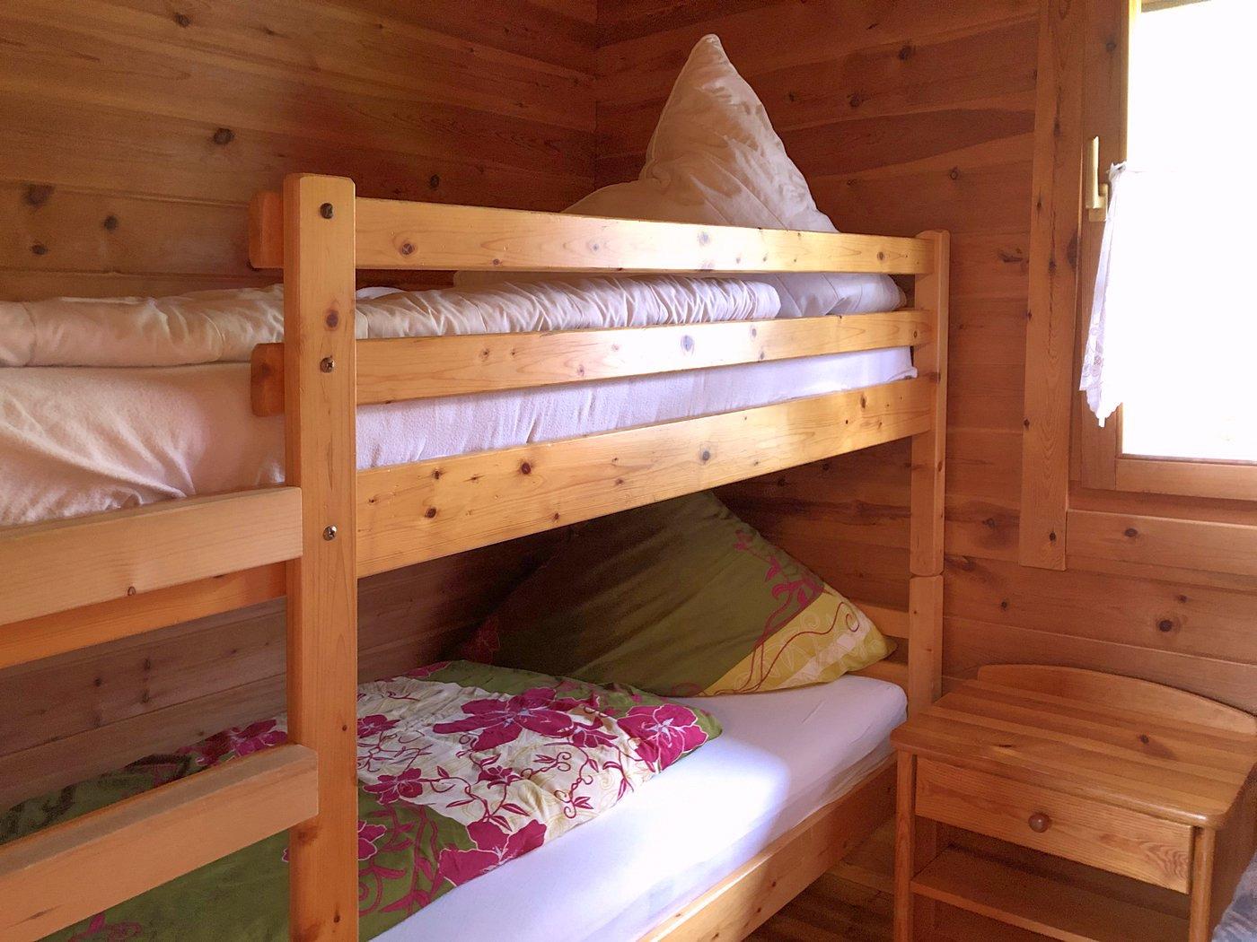 2 Schlafräume: einer mit 1 Doppelbett, einer mit 1 Einzelbett und 2 Stockbetten (zusätzlich gibt es ein Kleinkinderbett für Kinder bis 3 Jahre).