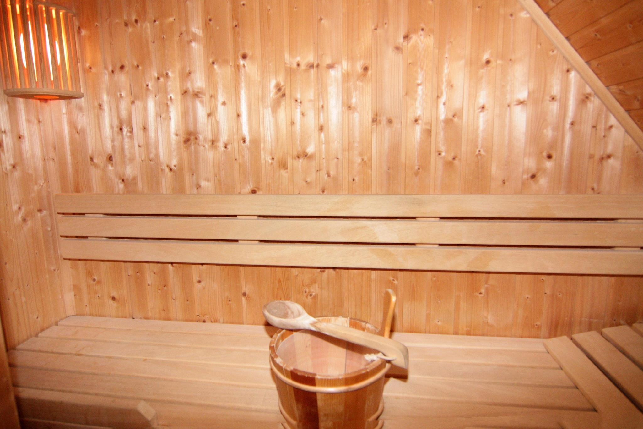 In der 1. Etage: (offene Küche(Esstisch(4 Personen), Wasserkocher, Toaster, Kochherd(Ceranfeld), Dunstabzugshaube, Kaffeemaschine, Backofen, Spülmaschine, Kühlschrank(+ Gefrierfach)), Wohn/Esszimmer(Doppelschlafcouch, TV(Satellit), Radio, CD-Spieler, Heizung(Fußbodenheizung)), Schlafzimmer(Doppelbett), guest toilet, Flur) In der 2. Etage: (Schlafzimmer(Doppelbett), Badezimmer(Dusche, Waschbecken, Toilette, Waschmaschine), Flur, Sauna(alleinige Nutzung)) Balkon, Gartenmöbel, Parkplatz, Handtücher/Bettwäsche (extra Gebühr)