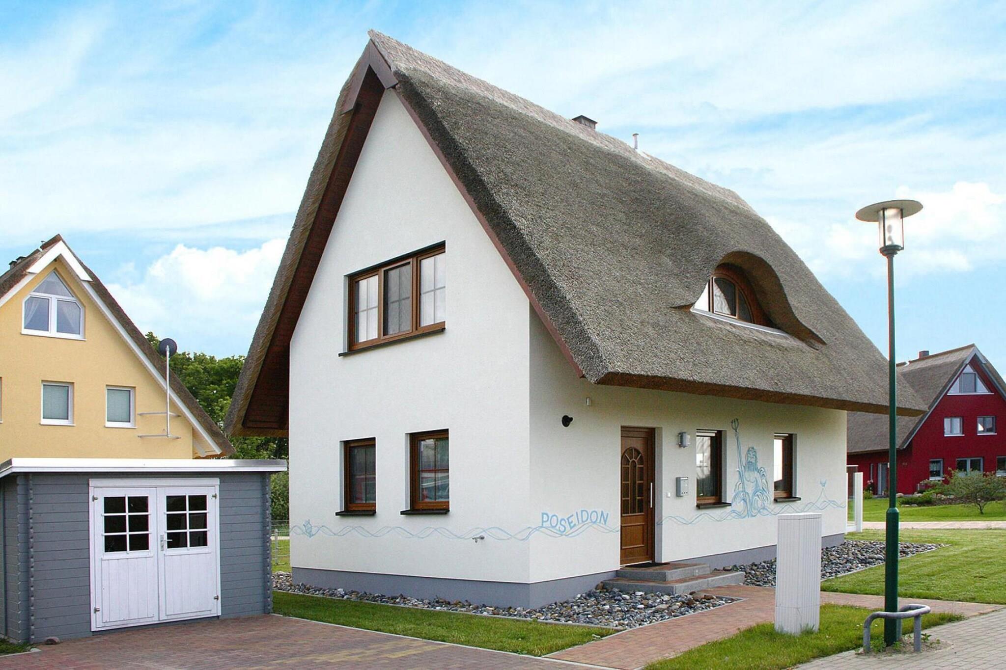 Reetgedecktes Ferienhaus Poseidon in Vieregge mit Sauna, Kamin und Meerblick, nur 100 m vom Breetzer Bodden entfernt.