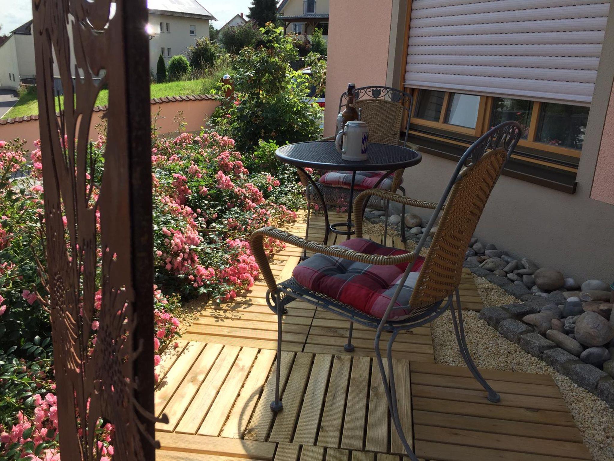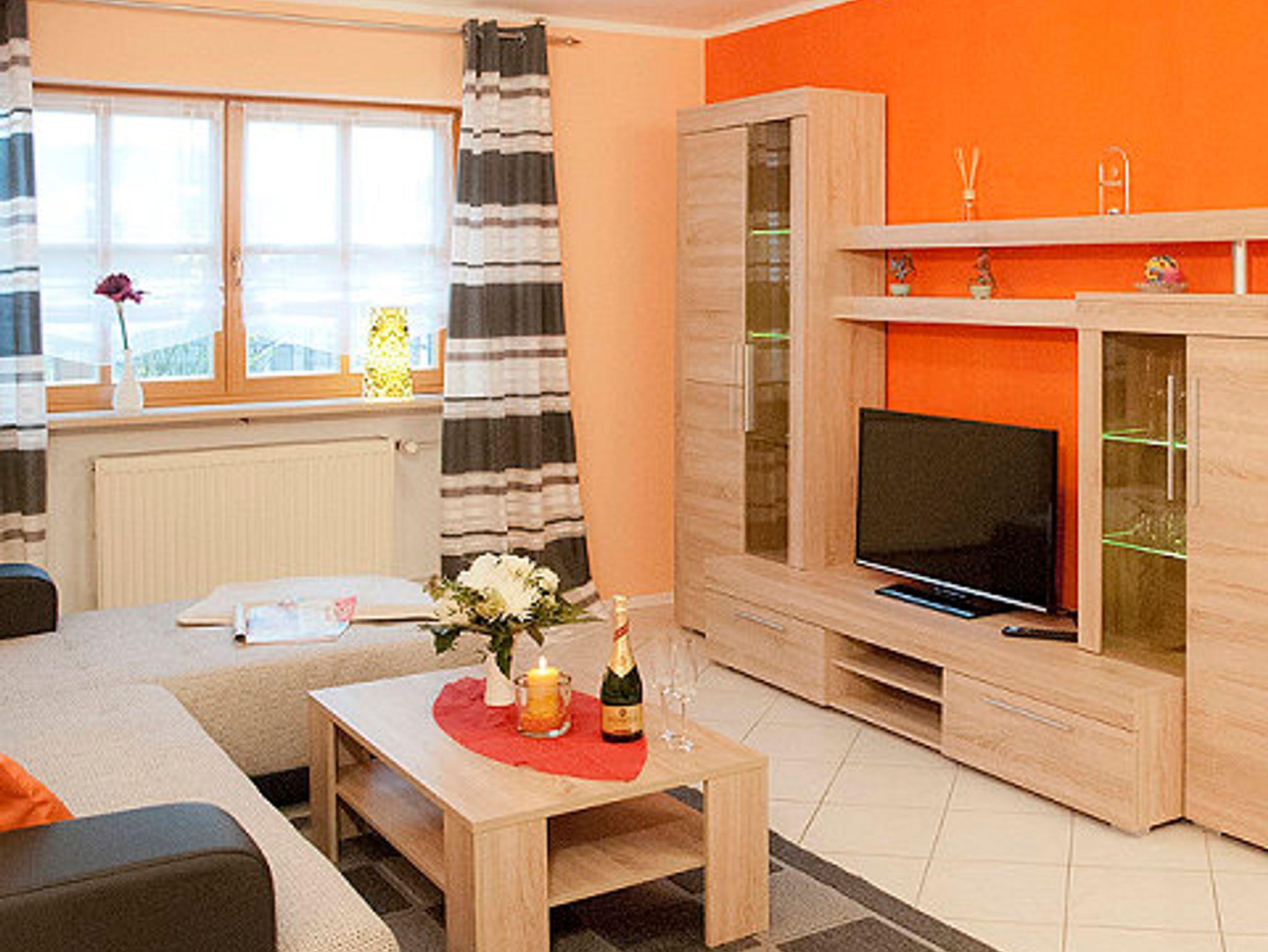 Unsere mit Liebe eingerichtete Ferienwohnung lässt für den Gast keine Wünsche offen. Sie bietet als Nichtraucherwohnung einen erholsamen Urlaub und für den Geschäftsreisenden einen angenehmen Aufenthalt. Die barrierefreie 80 m² Wohnung hat ein separates Schlafzimmer mit Boxspringbett. Im Wohnzimmer befindet sich zusätzlich eine Schlafcouch und ein Kleiderschrank. Babybett, Wickeltisch und Kinderhochstuhl sind vorhanden. In der Wohnküche befindet sich eine Eckbank mit Tisch und zwei Stühlen. In unserem Badezimmer mit Fenster bieten wir Ihnen eine Badewanne, Dusche, WC und Waschbecken. Föhn und Duschhocker sind vorhanden. Ein Balkon ist vorhanden, dieser gehört jedoch nicht direkt zur Wohnung, sondern kann Ihnen nach vorheriger Absprache zur Verfügung gestellt werden.