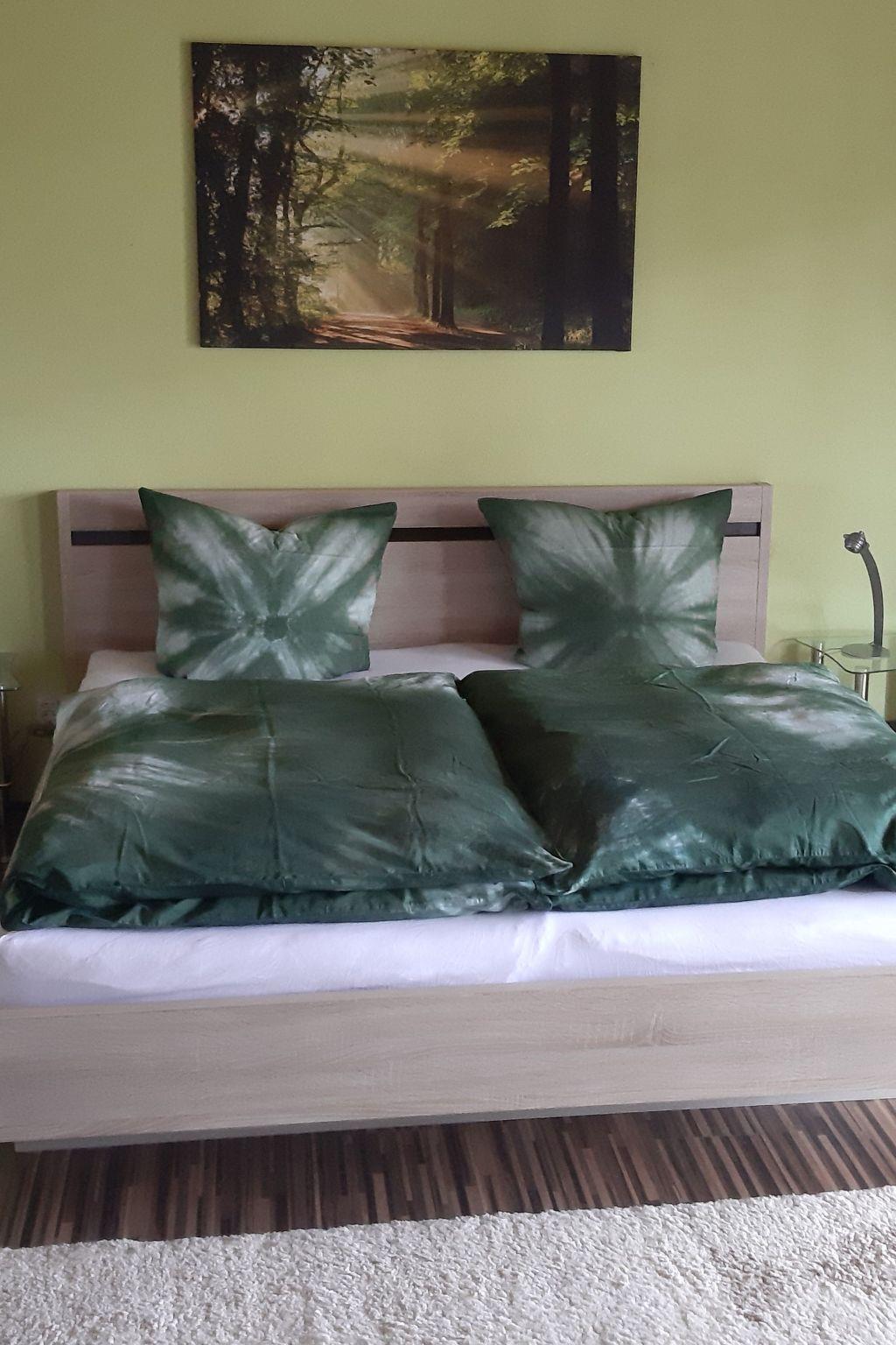 Die FeWo ist ca. 70 qm groß. Durch einen kleinen Flur gelangen Sie in den ca. 40 qm großen Wohn- Essbereich mit offener Küche. Eine ausziehbare Schlafcouch - 1,40 x 2 m - TV-Flat und ein Schwedenofen für romantische Abende zu Zweit. Die Terrassentüre führt in den Garten mit Grillplatz und gemütlicher Sitzecke sowie separates Raucherplätzchen. Das Schlafzimmer verfügt über ein Doppelbett - 1,80 x 2 m - und einen großen Kleiderschrank. Auch dort haben Sie Zugang zum Garten. Diesen teilen Sie mit einer zweiten FeWo. KurzbeschreibungSonstiges : NichtraucherhausKurzbeschreibung 1Anzahl Küchen : 1Wohnzimmer 1Sonstige Wohnzimmerausstattung : offene Küche, Essbereich und Wohnraum. Eine ausziehbare Schlafcouch und Couchtisch, Schwedenofen, großer TV-Flat auf einer kleinen Anrichte. Eßbereich, großer Tisch, Sitzgelegenheit für 4 Personen. Schlafzimmer 1Sonstige Schlafzimmereinrichtung : großer Kleiderschrank, 2 Nachtkästchen, kleine Kommode, Kleiderständer, 1 LesesesselKüche 1Sonstige Kücheneinrichtung : Kühlschrank mit Gefrierfach, Elektroherd, Dunstabzugshaube, Mikrowelle, Wasserkocher, Eierkocher, Geschirrspülmaschine, Kaffeemaschine, Waage, Töpfe, Pfannen, Geschirr, Besteck usw. ausreichend für 4 Personen,