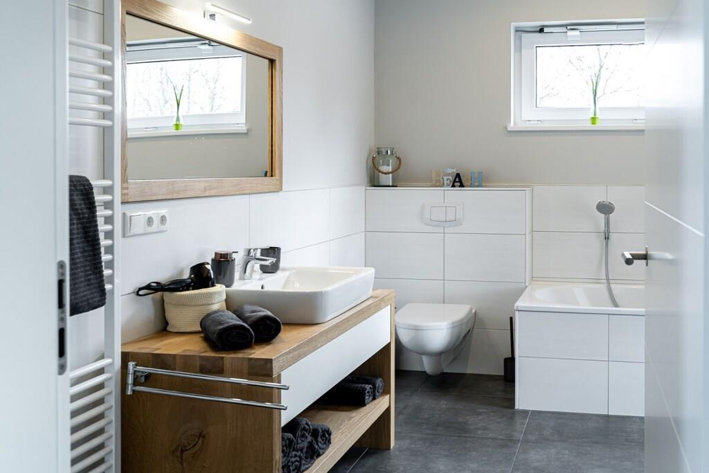 Im ehemaligen Fischerdorf Vierow erwartet Sie das moderne Ferienhaus Windflüchter mit hochwertiger Ausstattung. Das direkt am Feld gelegene, ebenerdige, barrierefreie Haus verfügt mit seinen 120 qm über ausreichend Platz für bis zu 6 Personen. Im Haus finden Sie 2 Schlafzimmer mit Doppelbetten und ein Gästezimmer mit einem ausziehbaren Tagesbett. Die voll ausgestattete Küche lässt keine kulinarischen Wünsche offen. Das großzügige Badezimmer verfügt über Badewanne und eine große geräumige Dusche. Im gesamten Haus können Sie kostenfrei WLAN nutzen. Außerdem steht Ihnen im Wohn-/ Essbereich ein Smart-TV zur Verfügung. Im Hobbyraum (Garage) lädt eine Tischtennisplatte bzw. ein Billardtisch zum Spielen ein. Durch die Barrierefreiheit des Hauses können sich auch mobilitätseingeschränkte Personen auf einen angenehmen Aufenthalt freuen.