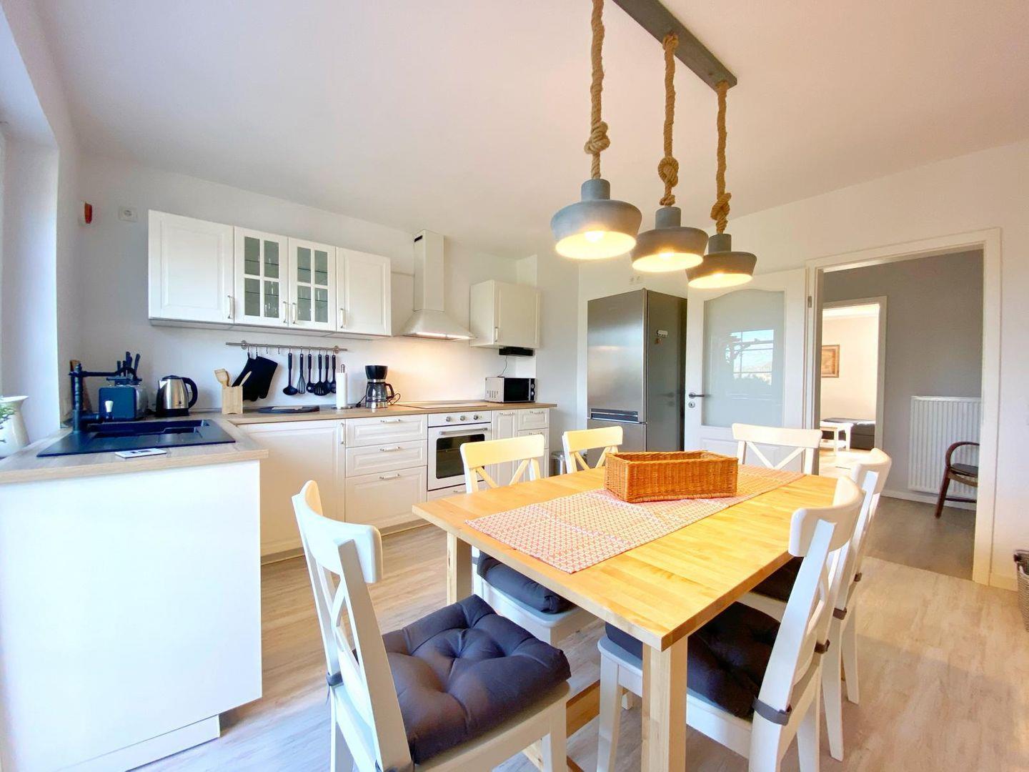 Die Ferienwohnung "Vilm" befindet sich im Erdgeschoß des Reethauses. Sie bietet auf ca. 105 qm Wohnfläche Platz für maximal 5 Personen. Die komplett im Jahr 2020 sanierte und neu möblierte Wohnung besteht aus einem sehr großen gemütlichen Wohnzimmer mit Kamin, Flachbild-TV und DVD-Player sowie aus zwei separaten Schlafzimmern mit je einem Doppelbett. Im Wohnzimmer gibt es eine Schlafcouch, wo eine weitere Person übernachten kann. Die geräumige Landhausküche ist komplett eingerichtet und bietet neben einem Ceranherd, Backofen, Geschirrspüler, Mikrowelle natürlich auch Kaffeemaschine, Toaster, Radio und Wasserkocher. Von ihr gelangt man auf die direkt zur Ferienwohnung gehörende 15qm große Terrasse mit Sitzmöbeln und einem wunderschönen Blick über den Bauerngarten und die angrenzende Landschaft. Im großzügigen Bad gibt es eine Dusche, WC und einen Haartrockner. Eine Waschmaschine steht zur gemeinschaftlichen Nutzung zur Verfügung ( von außen in den Keller ). Ein Kinderbett sowie ein Hochstuhl sind vorhanden. Die angrenzende Wiesen- und Boddenlandschaft bietet Freunden des ruhigen, sanften naturnahen Tourismus, insbesondere den Radlern, Reitsportlern, Anglern und Seglern ideale Bedingungen.