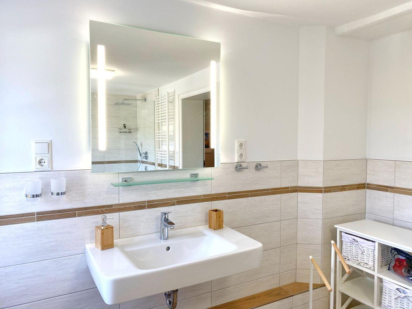 In dem kleinen, wunderschönen Örtchen Vilmnitz, direkt an der "Deutschen Alleenstraße" zwischen dem Ostseebad Binz und der zauberhaften Residenzstadt Putbus gelegen, befinden sich im reetgedeckten Ferienhaus insgesamt drei Ferienwohnungen. Die Ferienwohnung "Vilm" befindet sich im Erdgeschoß des Reetdachhauses. Die Ferienwohnungen "Goor" und "Muglitz" sind über eine separate Außentreppe im 1. OG zu erreichen. Die Wohnung "Vilm" mit einer Wohnfläche von ca. 105qm bietet Platz für maximal 5 Personen. Die Wohnung "Goor" mit einer Wohnfläche von ca. 92 qm bietet Platz für insgesamt 5 Personen. Die Wohnung "Muglitz" mit einer Wohnfläche von ca. 50 qm bietet Platz für insgesamt 3 Personen. Alle drei Wohnungen zusammen sind ideal für einen Urlaub mit Freunden oder in Großfamilie. Im liebevoll angelegten Bauerngarten stehen ausreichend Sitz-und Grillmöglichkeiten zur gemeinschaftlichen Nutzung zur Verfügung. Das insgesamt ca. 3000 qm große eingezäunte Grundstück verfügt über einen gepflasterten Vorplatz, über den man den großen Carport mit 3 Stellplätzen und Fahrradunterstellmöglichkeiten erreicht. Ihr Elektroauto können Sie während Ihres Aufenthaltes an der privaten E-Ladesäule im Carport laden. Im Haus gibt es ein WLAN und eine gemeinschaftliche Waschmaschine.