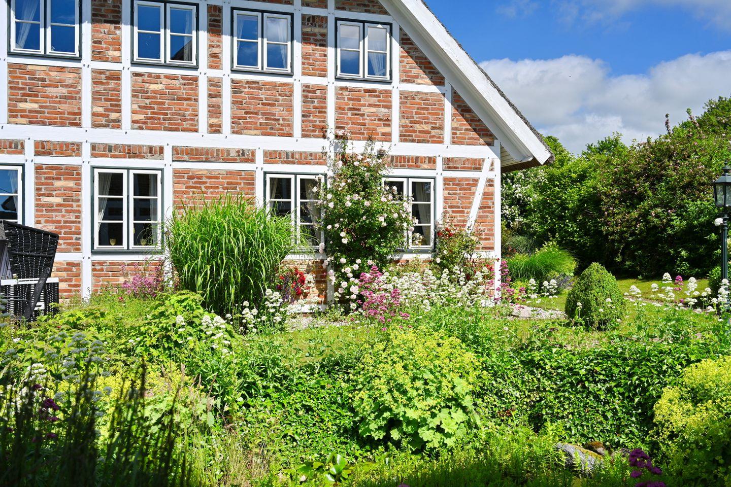 Auf einem romantischen Gartengrundstück mit Fernsicht auf die schöne Landschaft stehen zwei dieser wunderschönen, reetgedeckten Backsteinhäuser mit 3 bzw. 4 Wohnungen pro Haus.