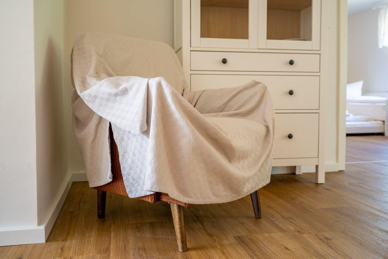 Das aus dem 17. Jahrhundert stammende alte Haus mit 2 Wohnungen. Die große Wohnung Storchennest im EG, ist ein liebevoll saniertes Feriendomizil mit einem wunderschönen großen Garten mit Weitblick über die Wiesen geworden. Modern eingerichtet mit zwei Schlafzimmern – eins davon mit einem weiteren ausziehbaren Kinderbett, offener Wohn- Essbereich mit Kaminofen und ein großes Badezimmer mit Dusche ist dieses moderne Innere. Im Garten können Sie Grillen und die Natur in vollen Zügen genießen. Viele weitere Details machen diese Ferienwohnung zu einem ganz besonderen Angebot. WLAN, Fliegengitter, möblierte Terrasse, Kinderutensilien, Geschirrspüler, Parkplatz direkt am Haus u.v.m. gehören zur selbstverständlichen Ausstattung. Das Haus wurde komplett neu modernisiert und mit Liebe zum Detail saniert und sehr geschmackvoll und hochwertig ausgestattet.
