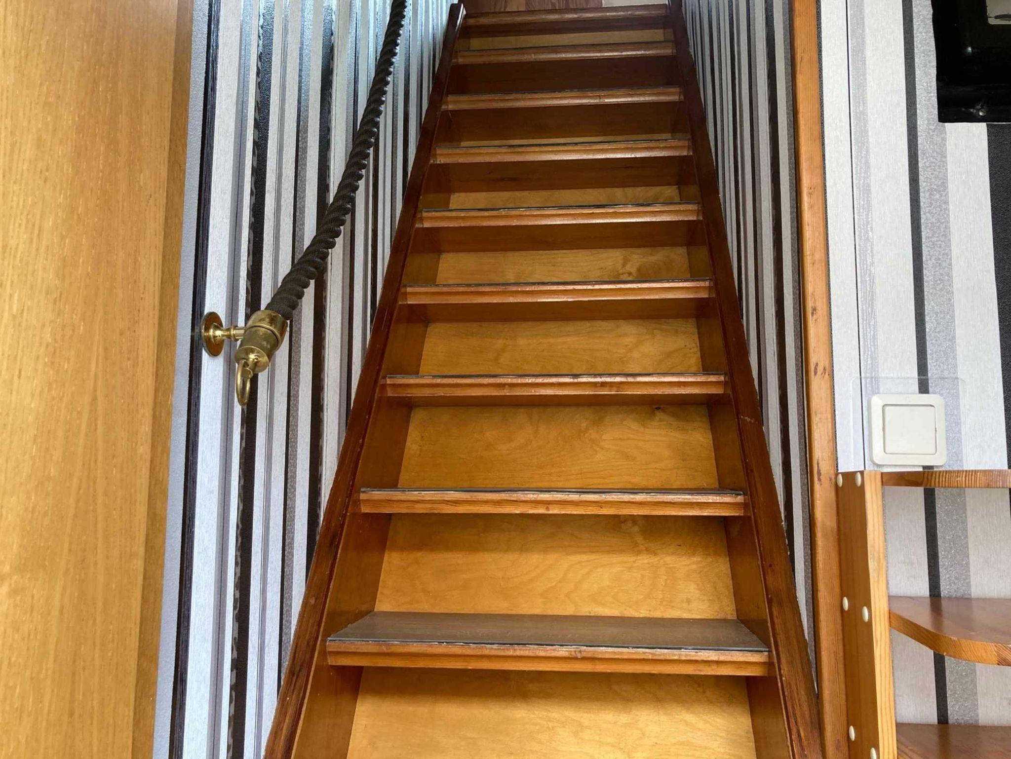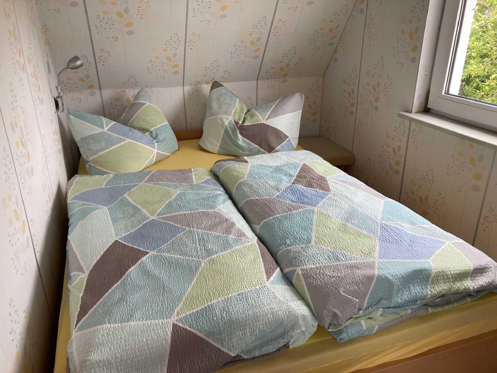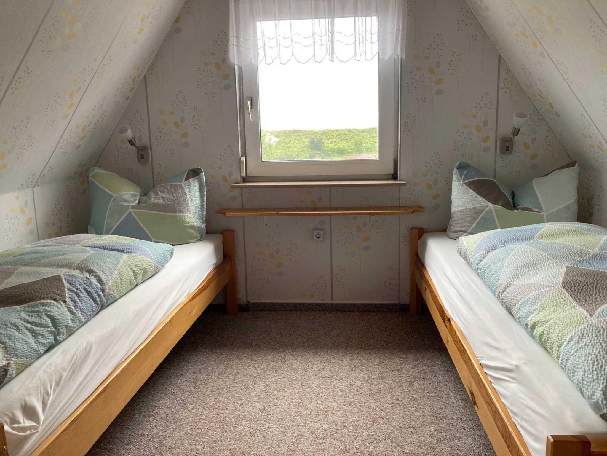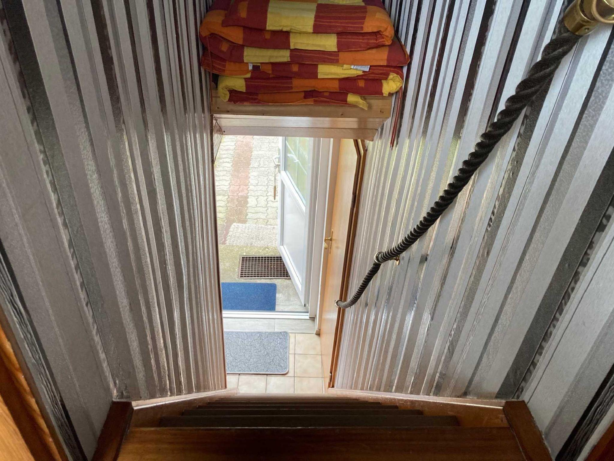 Zu den beiden Schlafräumen gelangen Sie über eine steilere Treppe. 1 Schlafzimmer verfügt über 1 Doppelbett und das andere über 2 Einzelbetten. Kleine Hunde bitte auf Anfrage.