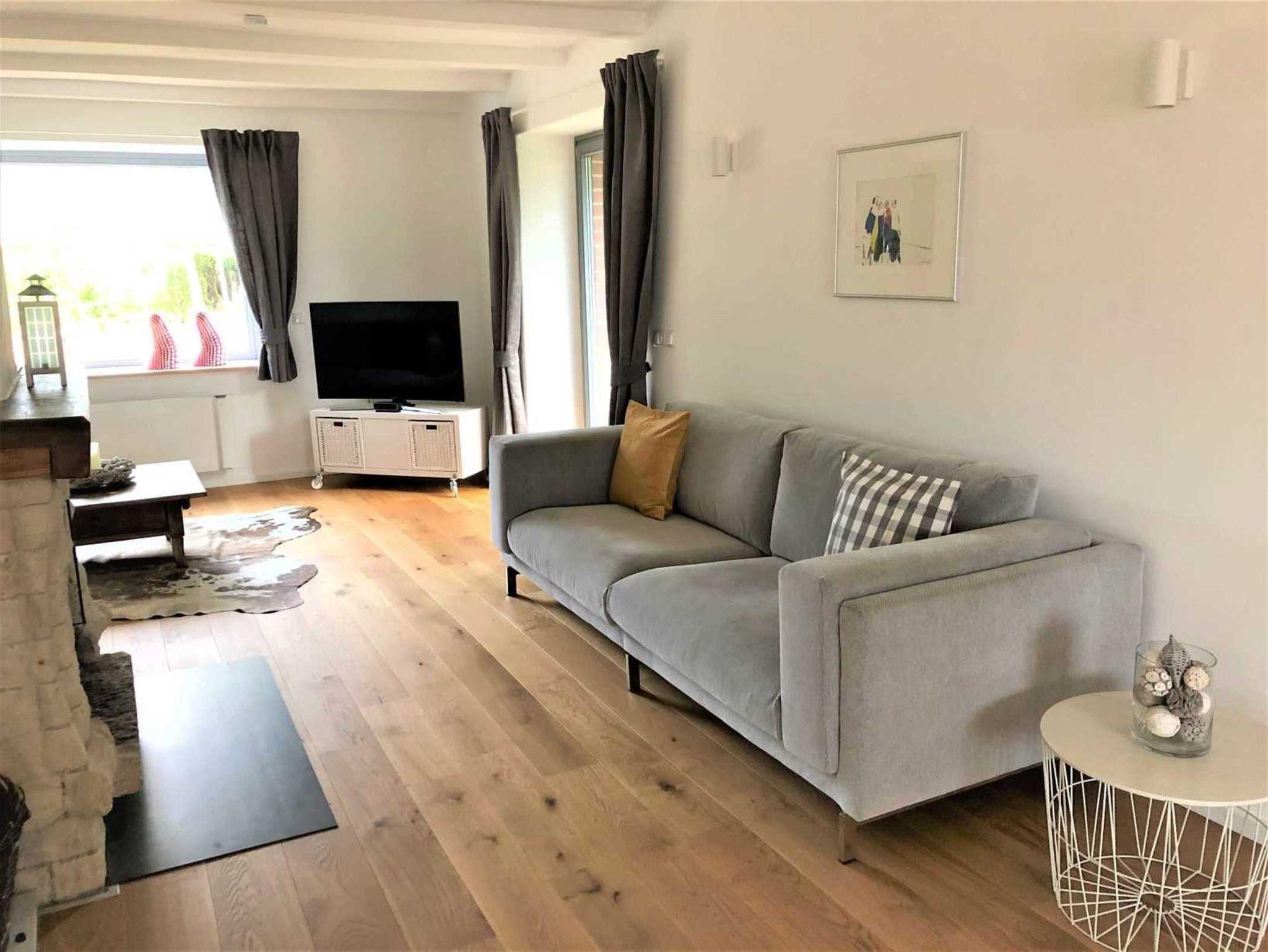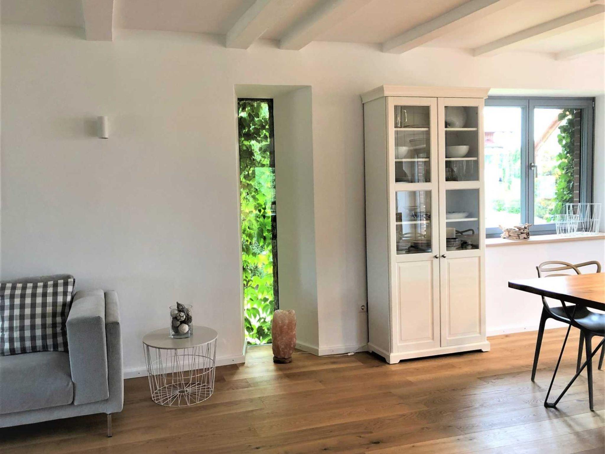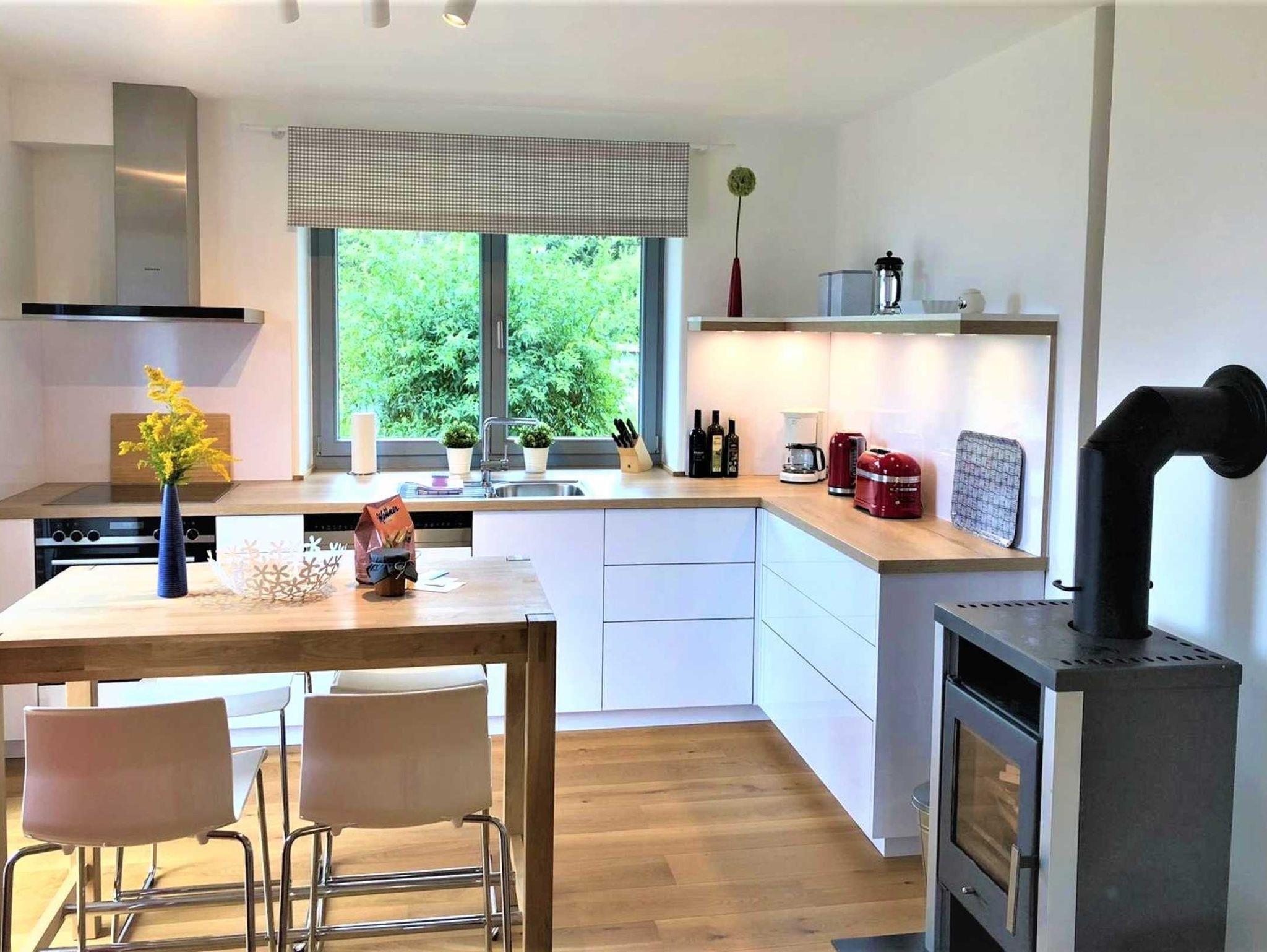 In dem offenen und lichtdurchfluteten Wohn- Ess- und Küchenbereich sorgen ein Kaminofen und ein Heizkamin an kühlen Tagen für eine wohlige Wärme. Ein großer Flachbild-TV und ein Bluetooth Lautsprecher sorgen für Entertainment. Ausreichend Infomaterial zu den Sehenswürdigkeiten in unserer Region, diverse Bücher und Gesellschaftsspiele für Groß & Klein sind vorhanden.