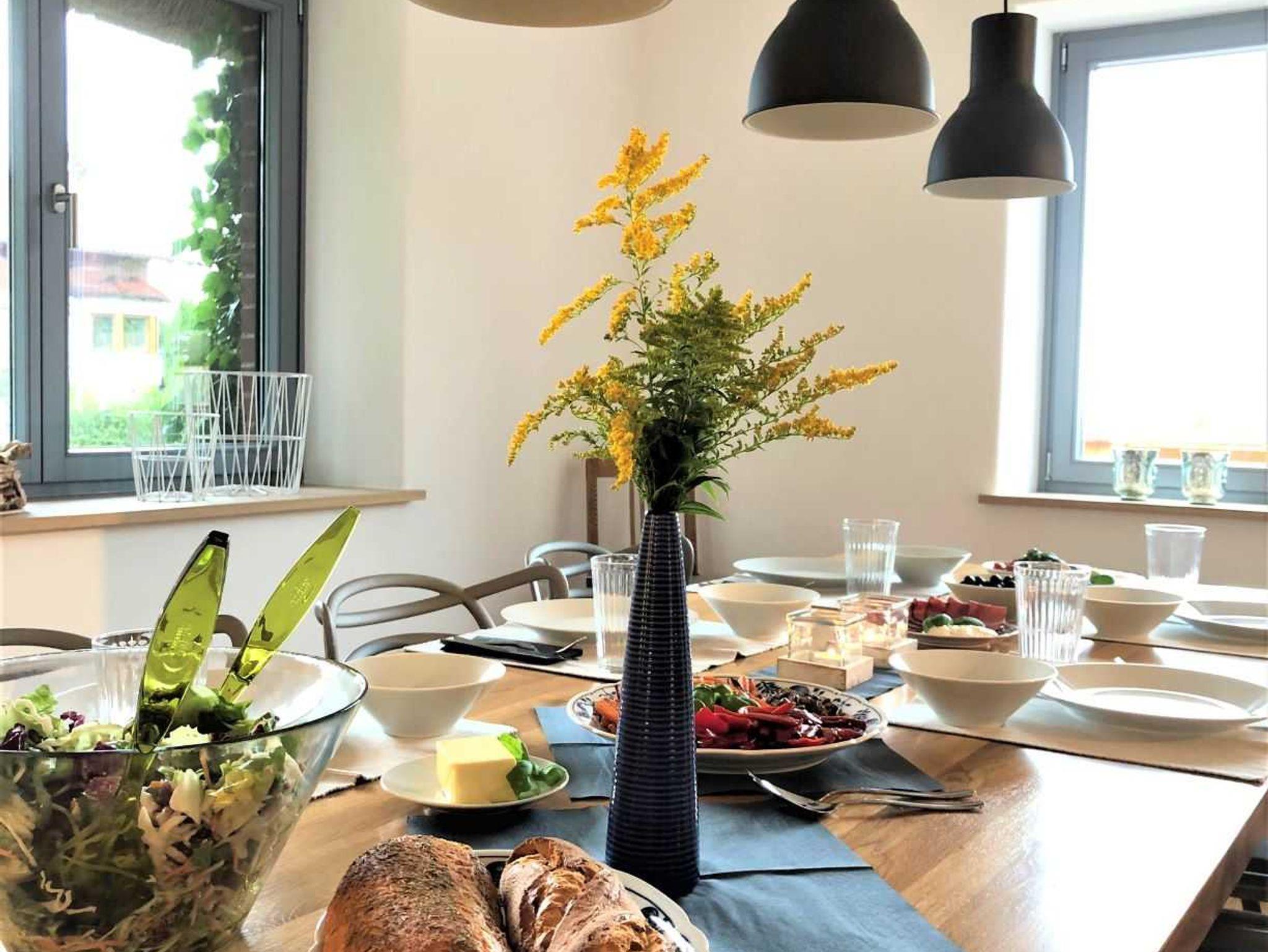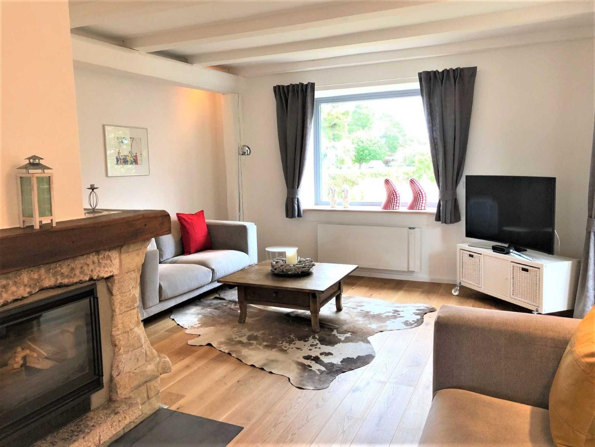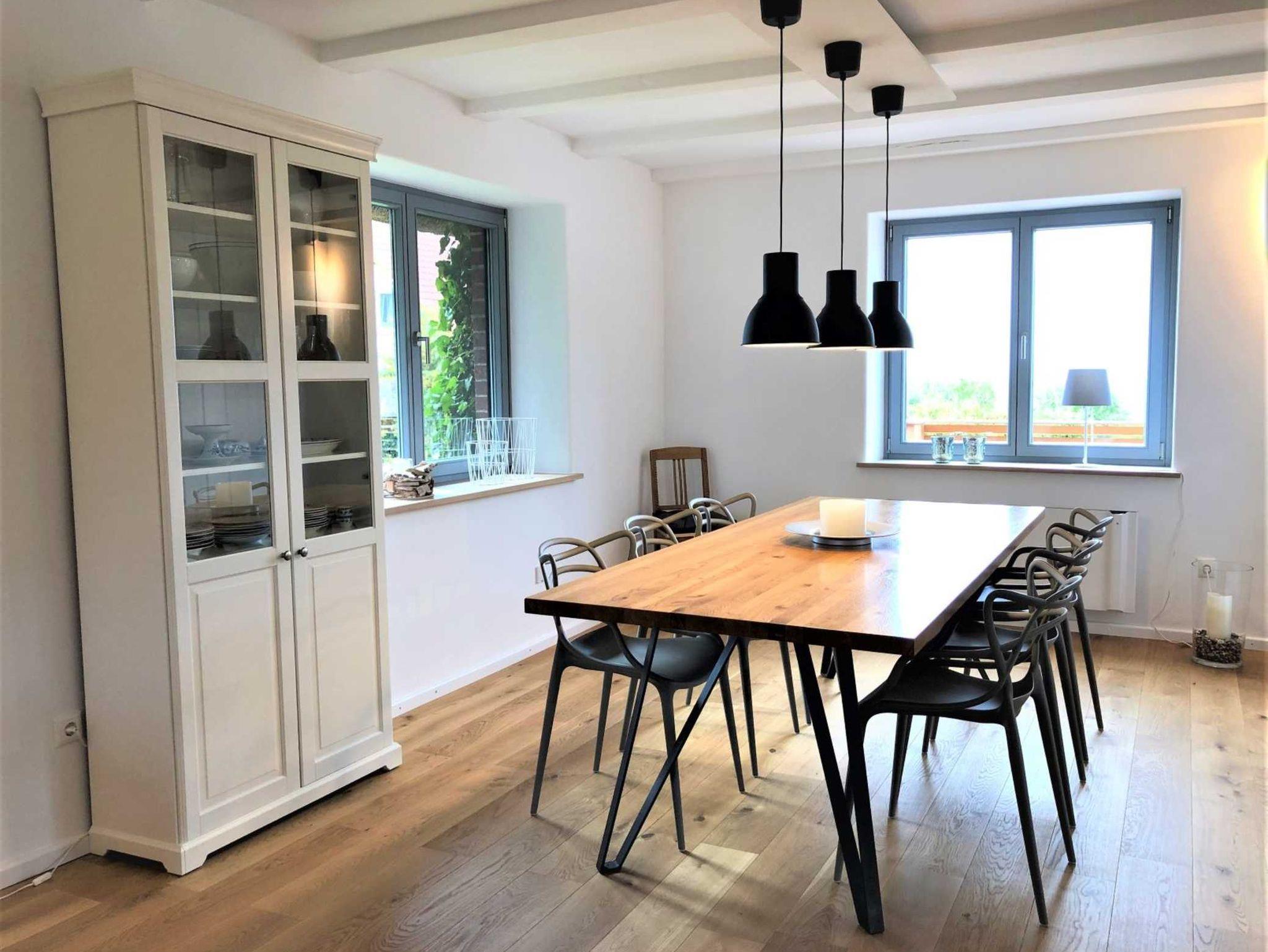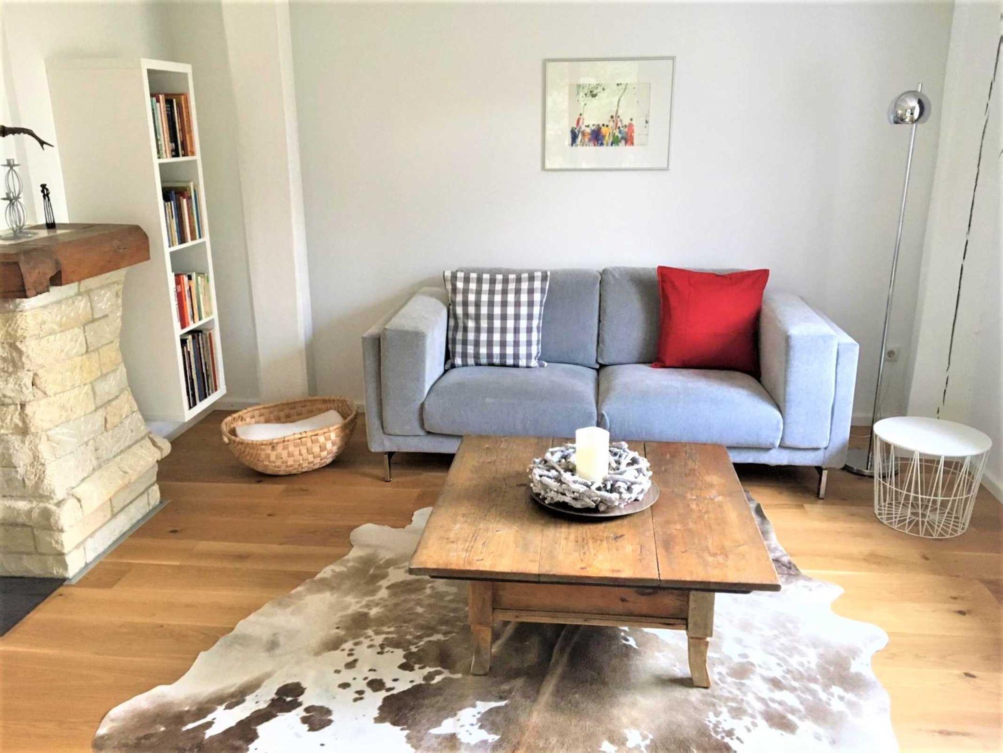 In dem offenen und lichtdurchfluteten Wohn- Ess- und Küchenbereich sorgen ein Kaminofen und ein Heizkamin an kühlen Tagen für eine wohlige Wärme. Ein großer Flachbild-TV und ein Bluetooth Lautsprecher sorgen für Entertainment. Ausreichend Infomaterial zu den Sehenswürdigkeiten in unserer Region, diverse Bücher und Gesellschaftsspiele für Groß & Klein sind vorhanden.