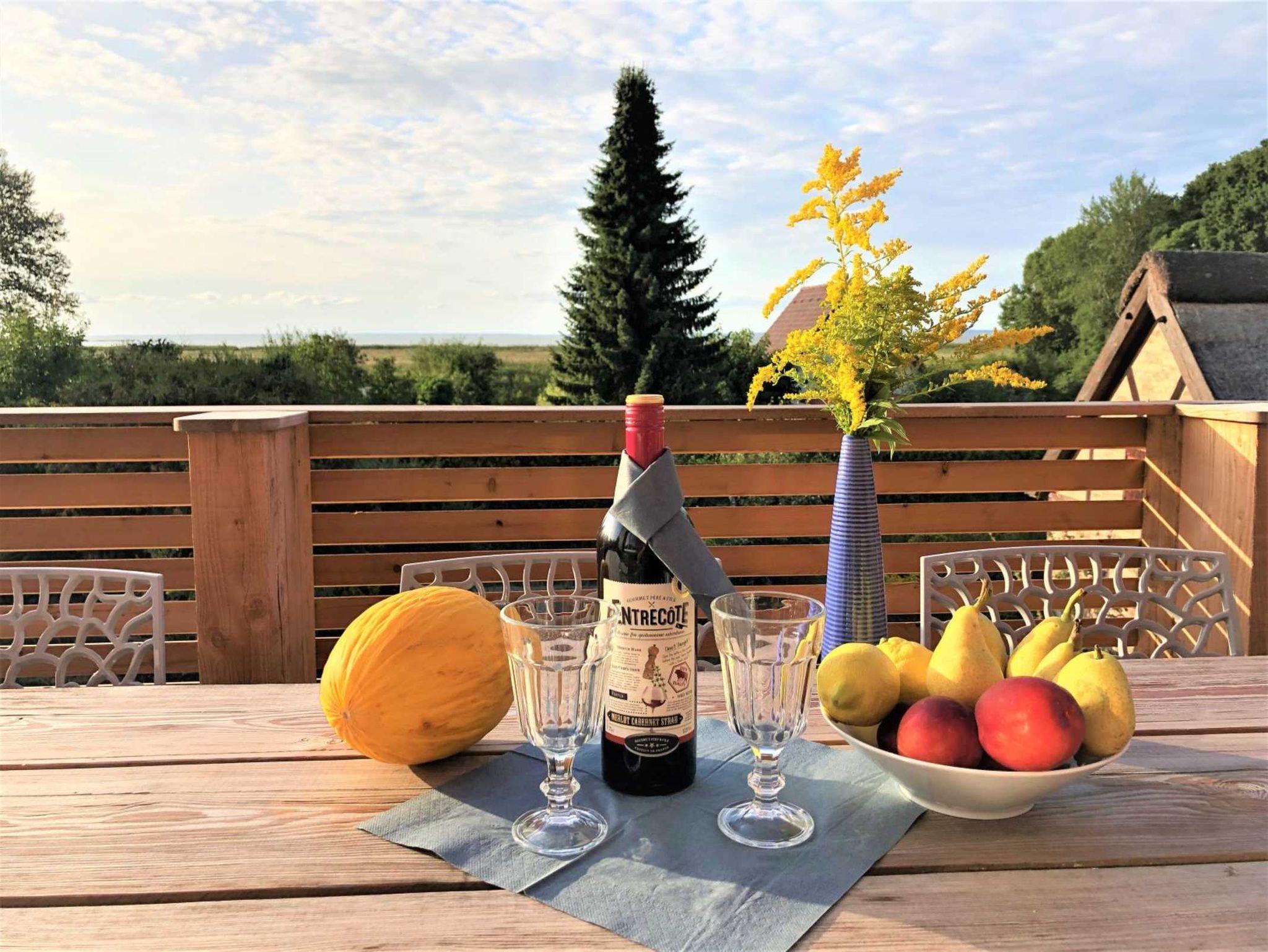 Durch die erhöhte Lage des Hauses genießen Sie den wunderschönen Ausblick über das Stettiner Haff bis zur Insel Usedom und in die umliegende Natur.